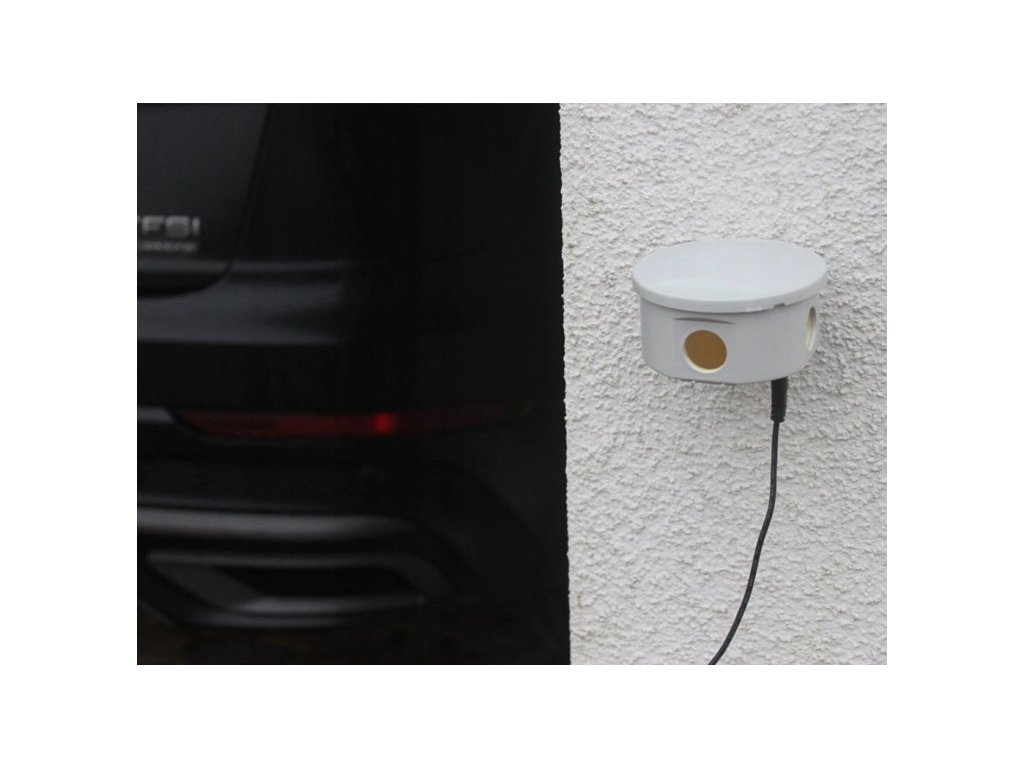Moderný 3D ultrazvukový plašič proti kunám a hlodavcom s dosahom 300 m² a uhlom záberu 270°. Má automatickú zmenu frekvencie (20–45 kHz), tri kovové reproduktory, magnetický držiak a odolný vodotesný kryt. Napájaný je cez 6V adaptér.