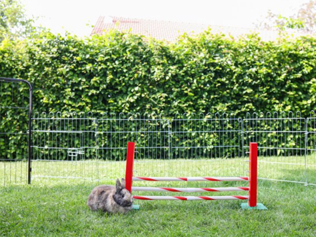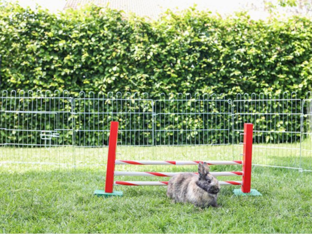 Táto agility prekážka je určená pre králiky, morčatá a iné hlodavce na tréning agility alebo tzv. králičí hop. Vďaka nastaviteľnej výške skoku od 5 do 30 cm a šírke 62 cm ponúka variabilné možnosti cvičenia. Súčasťou sú dve drevené stojky a päť plastových tyčiek, ktoré možno umiestniť vodorovne alebo do kríža.