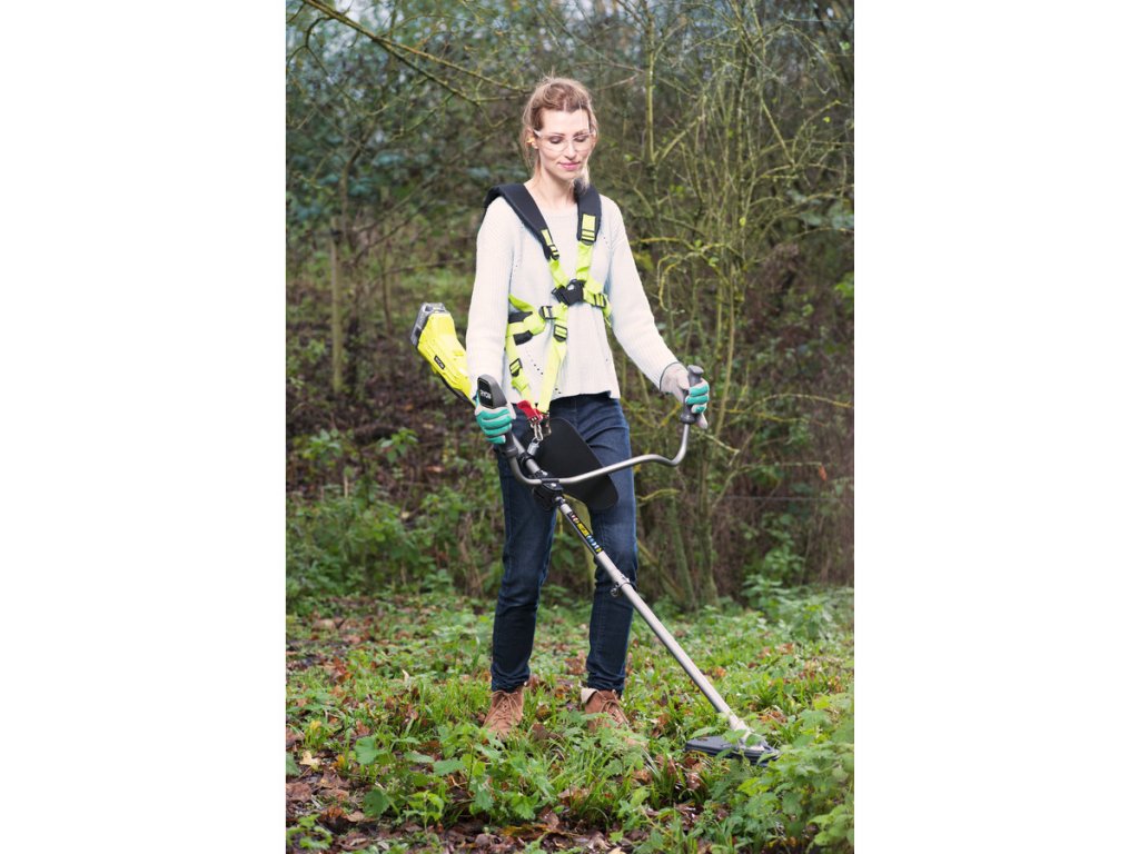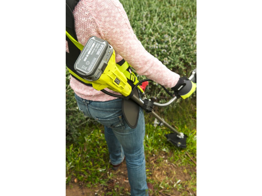 Vyžínač spadá do radu One Plus ™, keď jednu batériu môžete umiestniť do nástrojov, ktoré využijete vo vašej záhrade — kosačky, vyžínače či fukáre na lístie, ale tiež v dielni — brúsky, vŕtačky či priamočiare píly.