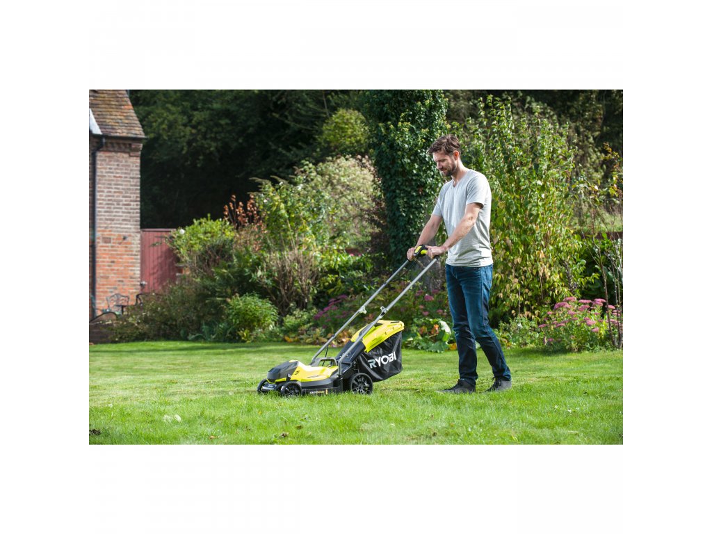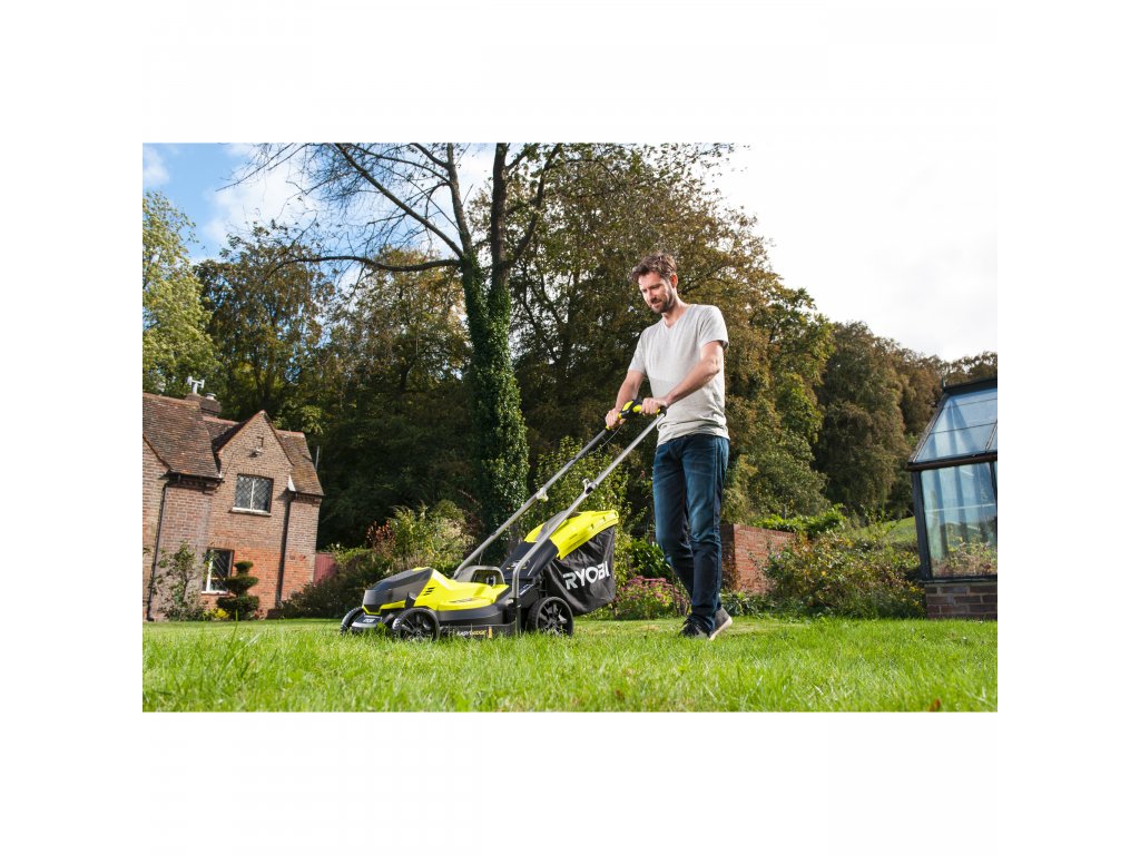 S AKU záhradnou kosačkou RYOBI OLM1833B 18V LI-ION sa z úpravy trávnika stáva jedna z najobľúbenejších záhradných aktivít. Kosačku sa dá jednoducho premeniť na mulčovaciu kosačku, kedy stačí odobrať kôš na zber trávy, zasunúť a zaistiť mulčovací klin, ktorý je súčasťou balenia. Je najmä vhodná na použitie tam, kde nie je prístup k elektrine, alebo pokiaľ nechcete manipulovať s napájacím káblom.