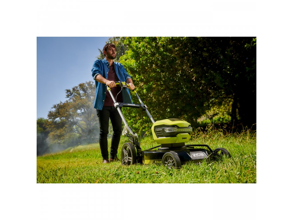 S mulčovacou AKU záhradnou kosačkou RYOBI RY36LMMX51A-1450 36 V LI-ION sa z úpravy trávnika aj v tých najnáročnejších podmienkach stáva jedna z najobľúbenejších záhradných aktivít. Kosačka nemá kôš na zber trávy a bez nutnosti pridávať ďalšie zariadenie trávu rovno jemne rozseká a následne rozprestrie pokosenú trávu, ktorá sa tým dostáva späť do pôdy kde pôsobí ako prírodné hnojivo. Je najmä vhodná na použitie tam, kde nie je prístup k elektrine, alebo pokiaľ nechcete manipulovať s napájacím káblom.