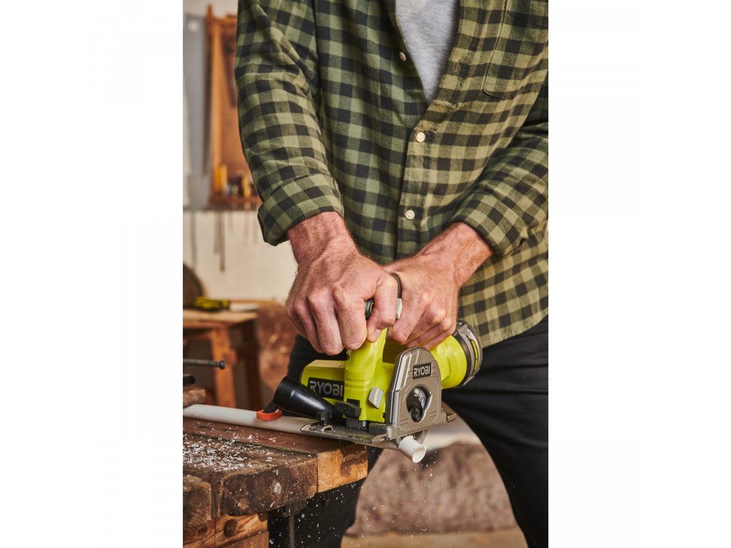 Kvalitná AKU píla do rôznych materiálov RYOBI R18MMS-0 18V, ponúka perfektné riešenie pre všetkých remeselníkov a kutilov, ktorí hľadajú pomocníka pri práci v dielni. Je vhodná na použitie najmä tam, kde nie je prístup k elektrine, alebo ak nechcete manipulovať s napájacím káblom.