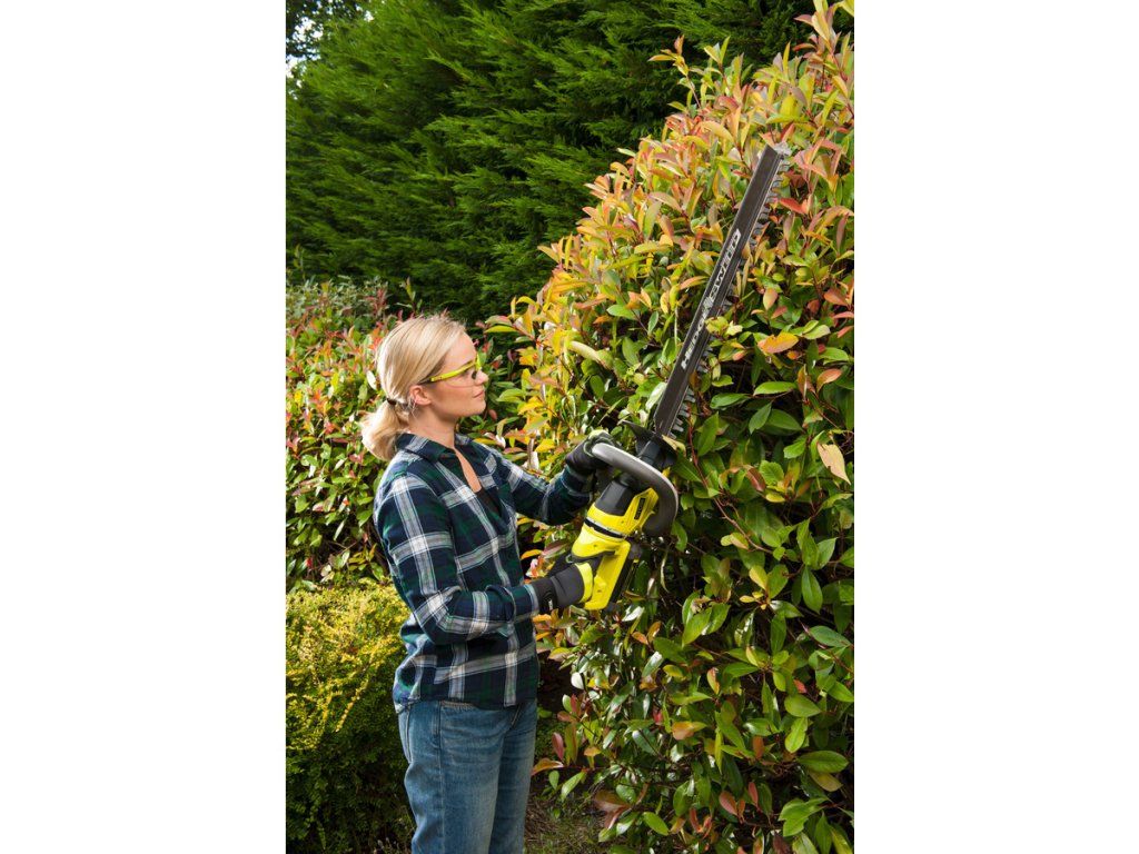 Akumulátorový plotostrih na živý plot RYOBI RHT36B61R 36 V s otočnou rukoväťou je ideálny pomocník pre úpravu živých plotov, okrasných stromčekov a kríkov, ktorý vám pomôže udržať váš plot krásny a zdravý. Je vhodný najmä pre použitie tam, kde nie je prístup k elektrine, alebo ak nechcete manipulovať s napájacím káblom.