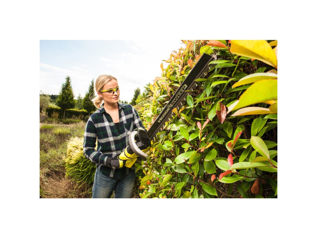 Dvojitá, laserom rezaná a diamantom brúsená strihacia lišta s reznou dĺžkou 60 cm pre čisté a presné rezy, vám dovolí upraviť konáre až s priemerom 26 mm. Otočná zadná rukoväť, ktorá je zaistiteľná v 5 polohách, je vybavená predĺženou spúšťou a pogumovaním pre pohodlné strihanie pod akýmkoľvek uhlom. Samozrejmosťou sú bezpečnostné prvky, ako dvojručné ovládanie, ochranný štít, ktorý zaručí vašu bezpečnosť pri manipulácii s plotostrihom.