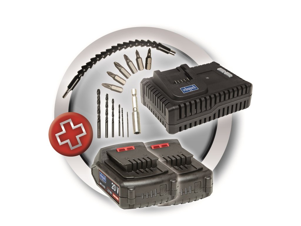 Jedna 20 V batéria poháňa všetko. Vďaka vyspelej elektronike batérie Scheppach "spozná", v ktorom je stroji a dokonale sa mu prispôsobí. Vy tak dostanete z každého stroja maximálny výkon aj pracovnú dobu. Počet strojov Scheppach 20 V sa bude každým rokom zvyšovať. Batériami Scheppach 20 V možno poháňať veľa druhov akumulátorového náradia 20 V (vŕtačky, brúsky, píly, hoblíky, rázové uťahovače pod.).