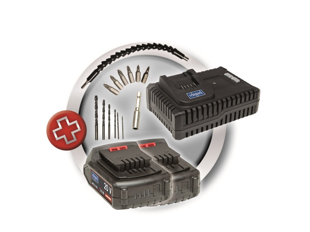 Jedna 20 V batéria poháňa všetko. Vďaka vyspelej elektronike batérie Scheppach "spozná", v ktorom je stroji a dokonale sa mu prispôsobí. Vy tak dostanete z každého stroja maximálny výkon aj pracovnú dobu. Počet strojov Scheppach 20 V sa bude každým rokom zvyšovať. Batériami Scheppach 20 V možno poháňať veľa druhov akumulátorového náradia 20 V (vŕtačky, brúsky, píly, hoblíky, rázové uťahovače pod.).