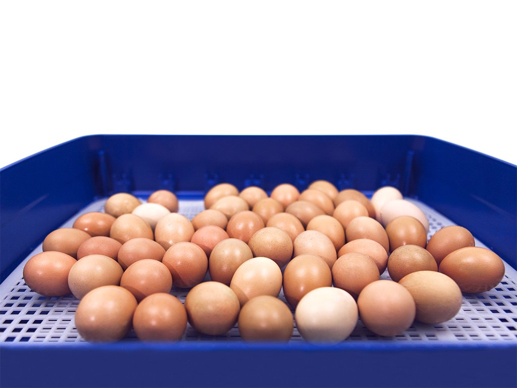 Kapacita s otočným roštom: 49 slepačích, 196 prepeličích, 49 husacích, 49 kačacích alebo 49 bažantích vajec.