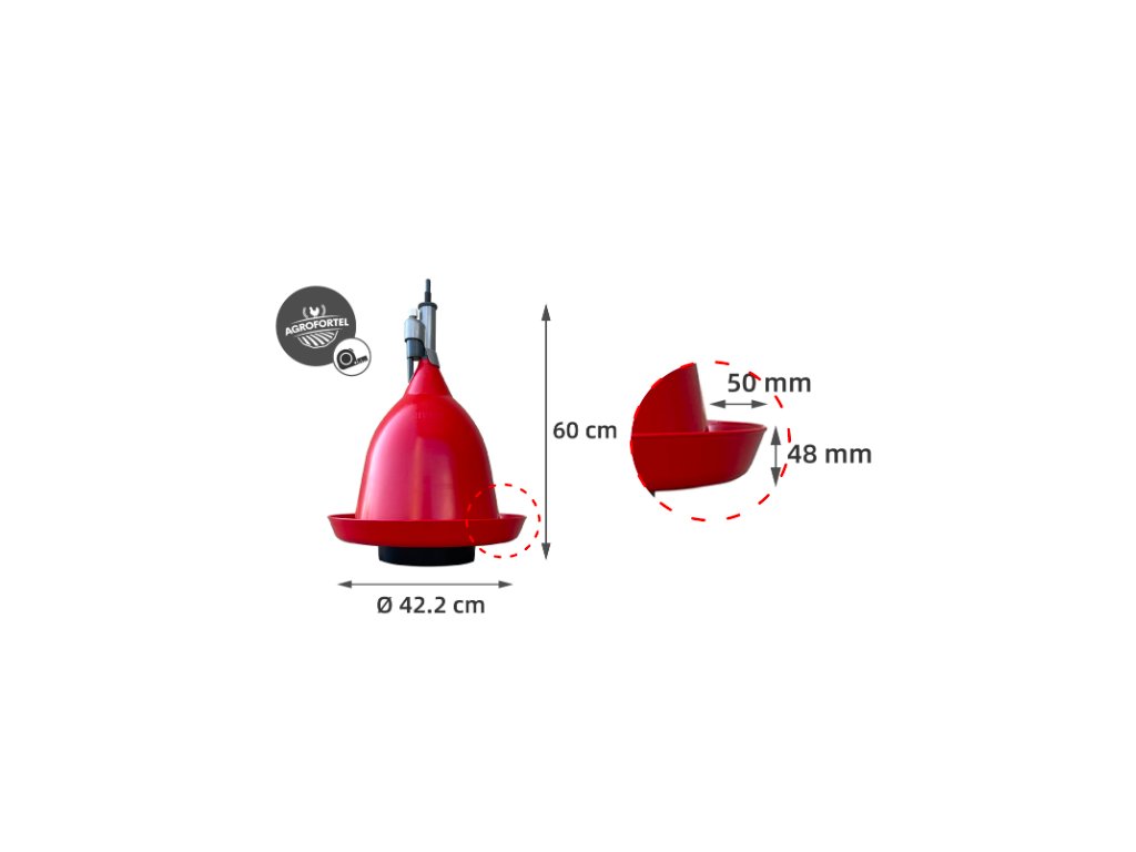 - Vysoká kapacita: Jeden napájací zvon je dimenzovaný pre obsluhu 60 až 80 dospelých nosníc alebo chovných vtákov.