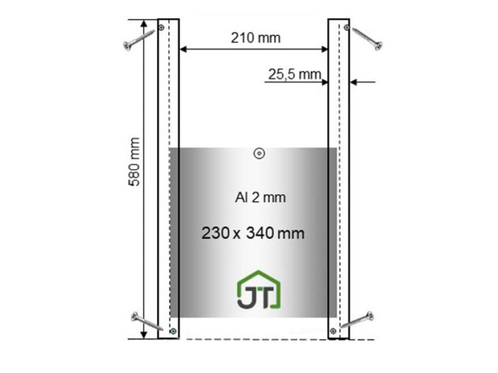 Rozmery celého systému zatvárania vrátane pojazdov sú 26 x 58 cm. Rozmer samostatných dvierok je 23 x 34cm. Rozmerovo sú tieto dvierka ideálne pre sliepky alebo menšie kačice.