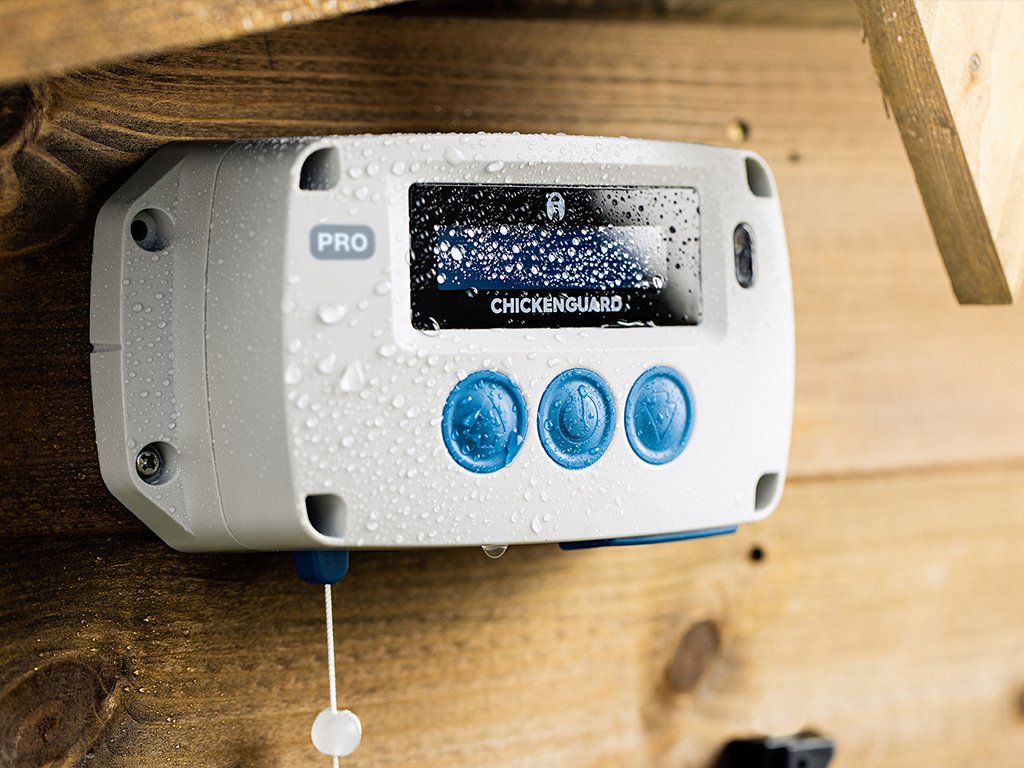 Cicken Guard Pro má veľmi výkonný motor, ktorý dokáže zdvihnúť až 2 kg, takže je ideálny na otváranie väčších a ťažších dvierok. Súčasťou zariadenia je aj bezkontaktný snímač polohy dvierok. Prístroj je vybavený veľmi odolným puzdrom, a tak zaisťuje perfektnú ochranu pri extrémnych poveternostných podmienkach až do teploty -20 °C. Všetky potrebné informácie o nastavení sú prehľadne znázornené na dvojriadkovom LCD displeji. LCD displej prejde po určitej dobe nečinnosti do "režimu spánku", aby sa zvýšila životnosť displeja. Zariadenie znovu "prebudíte" stlačením tlačidla MENU. Pre nastavovanie programov slúžia extra veľké tlačidlá, aby bolo možné ich ovládať aj v rukaviciach.