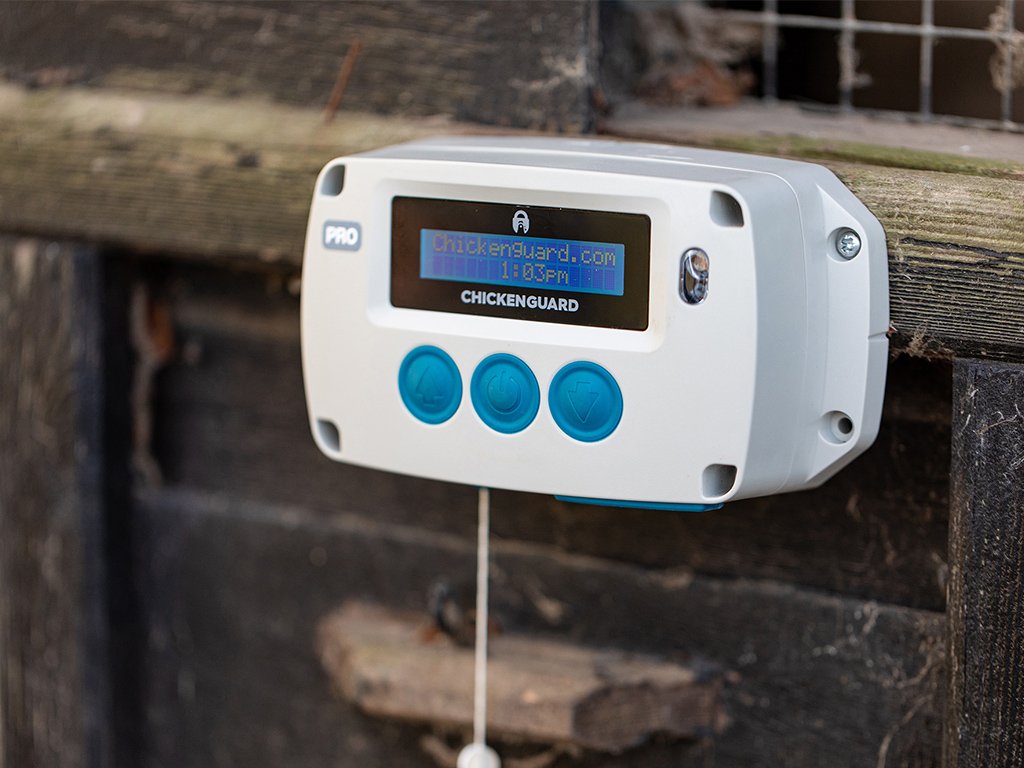 Automatické otváranie a zatváranie kurína CHICKEN GUARD PRO so svetelným senzorom a časovačom. Jedná sa o najvýkonnejší kompletný automatický systém ovládania pohybu dvierok až do 2 kg (dvierka nie sú súčasťou balenia). Prehľadný LCD displej a automatická kalibrácia dvierok zaisťujú intuitívne ovládanie jednotky. Zariadenie je vhodné až do teploty -20 °C. Nastavenie zariadenia je naozaj jednoduché. Súčasťou balenia je podrobný slovenský návod.
