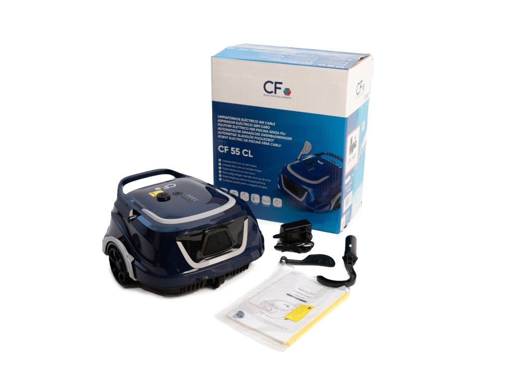 Doprajte si čistý bazén každý deň bez zbytočnej námahy. Automatický akumulátorový vysávač CF 55 AKU spoľahlivo vyčistí celé dno vášho bazéna a po ukončení čistiaceho cyklu sa automaticky zaparkuje k stene – pripravený na jednoduché vybratie pomocou teleskopického háku. Vysávač je vhodný pre všetky typy bazénov s plochou do 80 m2 a maximálnym sklonom dna 15°.