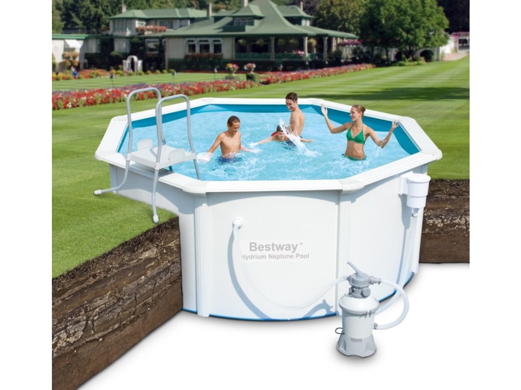 - K bazénom Bestway môžete voľne použiť akúkoľvek kartušovú či pieskovú filtráciu Bestway. Pre jednoduché napojenie filtrácie sú na stene bazéna pripravené priechody. K tomuto bazénu je dodávaná kartušová filtrácia s filtračným výkonom 9463 l/hod. s príslušenstvom (1 ks filtračnej vložky typ II., hadica na pripojenie k bazénu).