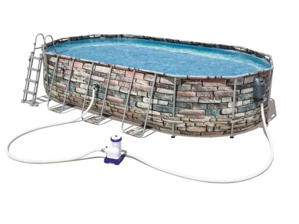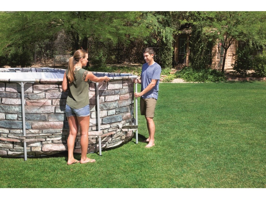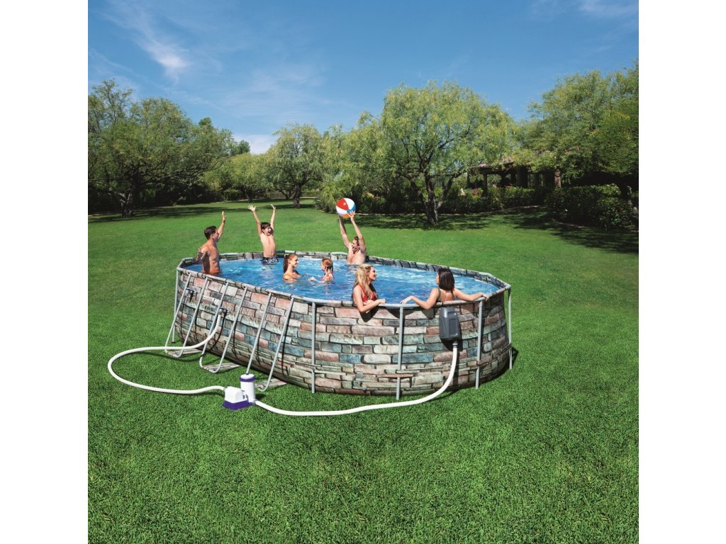 Nadzemné oválne rodinné bazény z trojvrstvového vinylu TriTech™ a zosilnenej kovovej konštrukcie Power Steel™ s pevným dnom, patria vďaka svojej jednoduchej a rýchlej montáži medzi najpredávanejšie na trhu. Zostavenie obvykle trvá 2-3 ľuďom 1 hodinu. Stačí iba zostaviť konštrukciu a napustiť vodou.