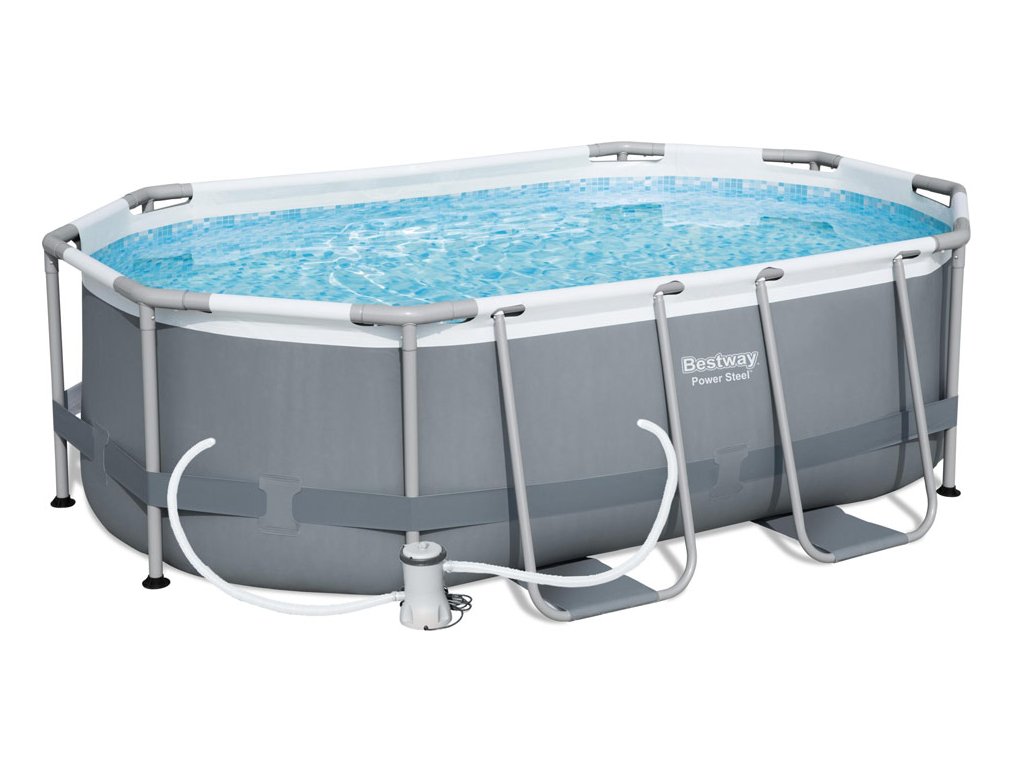 Nadzemní oválné rodinné bazény z trojvrstvého vinylu TriTech™ a zesílené kovové konstrukce Power Steel™ s pevným dnem, patří díky své jednoduché a rychlé montáži mezi nejprodávanější na trhu. Sestavení obvykle trvá 2-3 lidem 30 minut. Stačí pouze sestavit konstrukci a napustit vodou.
