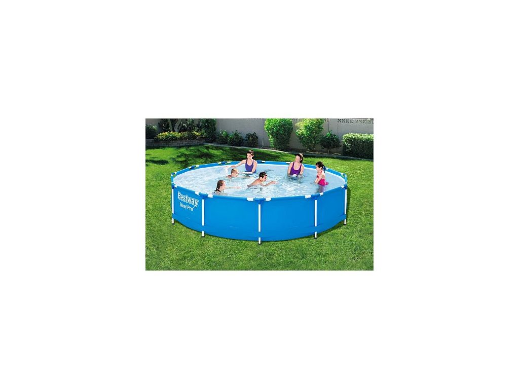 Nadzemný bazén s pevnou konštrukciu BESTWAY Steel Pro s priemerom 366 cm a s hĺbkou 0,76 metra. Samostatný bazén je dodávaný bez filtrácie.