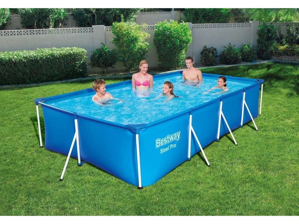 Nadzemné obdĺžnikové rodinné bazény z trojvrstvového vinylu TriTech™ a zosilnenej konštrukcie PowerSteel™ s pevným dnom, patrí vďaka svojej jednoduchej a rýchlej montáži medzi najpredávanejšie na trhu. Zostavenie obvykle trvá 2-3 ľuďom 30 minút. Stačí iba zostaviť konštrukciu a napustiť vodou.