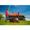 Funkcia motorového pojazdu eliminuje potrebu kosačku tlačiť a šetrí čas a energiu. Uľahčí vám prácu a vy zvládnete bez námahy kosenie aj v nerovnom a ľahko svahovitom teréne. Výhodou tejto kosačky je tiež veľmi jednoduché nastavenie výšky kosenia s piatimi polohami, ktoré sa vykonáva pomocou zatiahnutia páčky umiestnenej nad zadným kolesom kosačky.