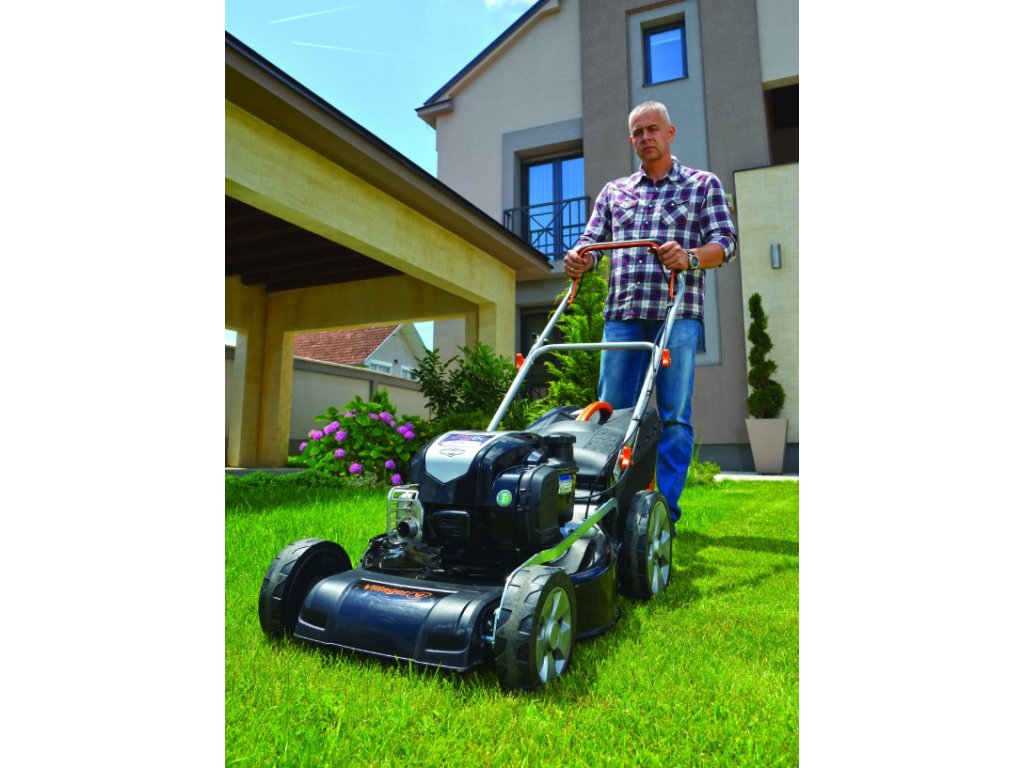Funkcia motorového pojazdu eliminuje potrebu kosačku tlačiť a šetrí čas a energiu. Uľahčí vám prácu a vy zvládnete bez námahy kosenie aj v nerovnom a ľahko svahovitom teréne.