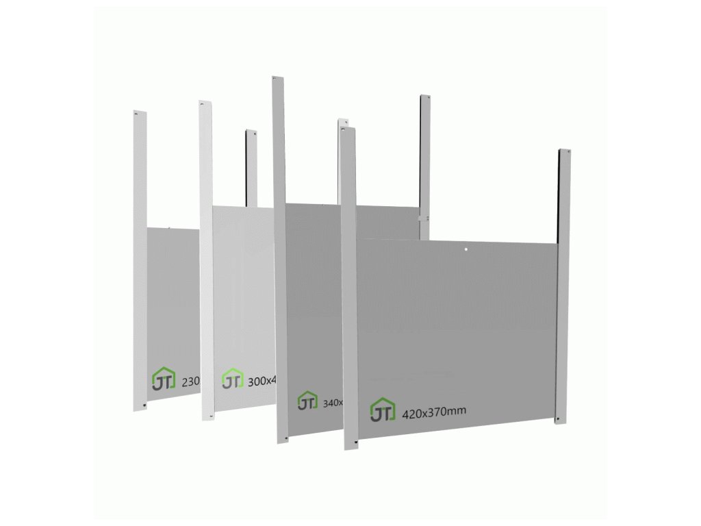 - Obsah balenia: Hliníkové dvierka, 2 vodiace lišty a upevňovací materiál.