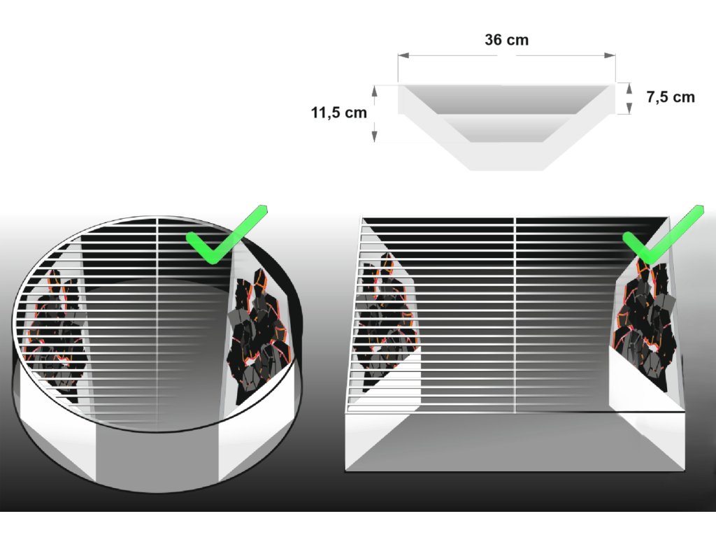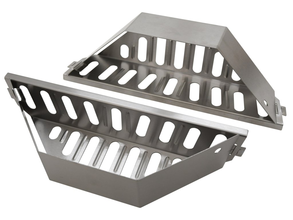 Sada obsahuje 2ks týchto boxov z nerezovej ocele. Každý box má rozmery 36 x 11,5 x 7,5 cm. Je vhodný ako do hranatých tak okrúhlych grilov patričných rozmerov.