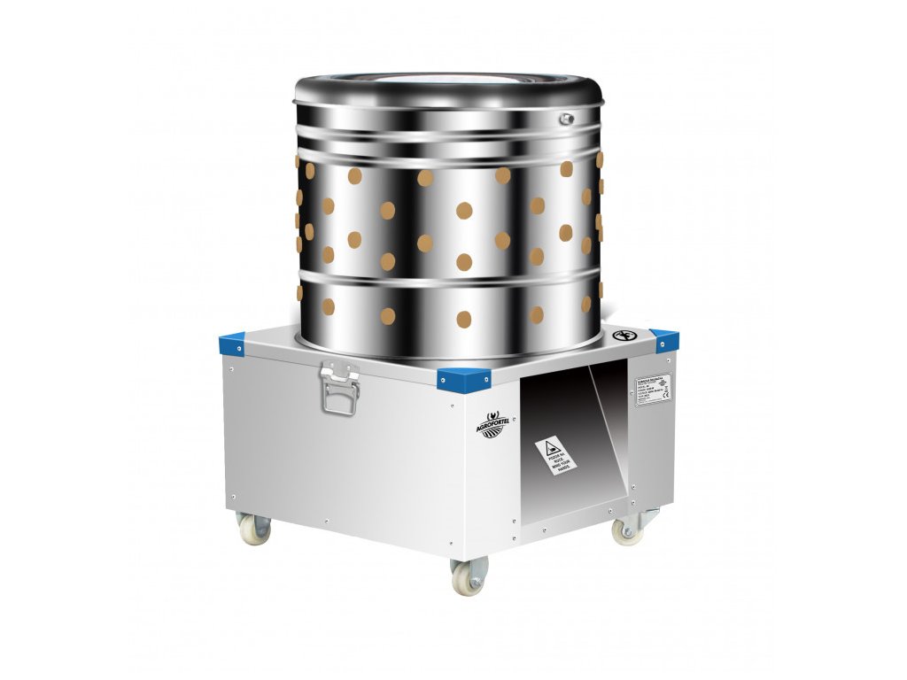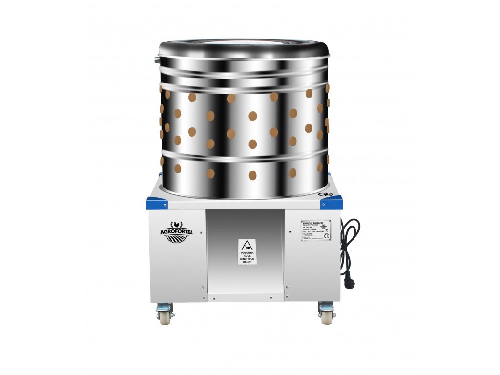 Ponúkame Vám výbornú elektrickú bubnovú šklbačku na hydinu - kurčatá, kačice, husi atď. Ideálna váha je do 18 kg. JEDNÁ SA O ALTERNATÍVU K MODELU BRM1800 od značky AGROFORTEL. Šklbačka je osadená kvalitnými, gumovými šklbacími prstami, ktoré sú vymeniteľné. Jadrom šklbačky je motor 2HP s výkonom 1500 W. Šklbačka Vám naozaj do čista ošklbe všetku sparenú hydinu a stane sa tak Vašim dlhoročným pomocníkom. Šlkbačka je vyrobená z kvalitnej nerezovej ocele, ktorá sa ľahko čistí. Ako ochranu proti úrazu má na rohoch krytky. Do šklbačky môžete zapojiť hadicu pre ľahké odplavovanie peria. Šklbačka je vhodná na domáce použitie.