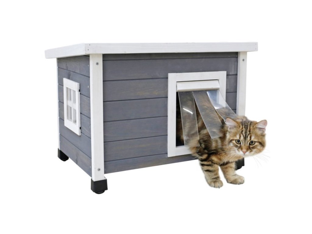 - Komfort pre vášho miláčika: Odklápacie dvierka s priehľadnými lamelami chránia mačku pred vetrom a chladom, zatiaľ čo malé plexisklové okienko zabezpečuje dostatok svetla.