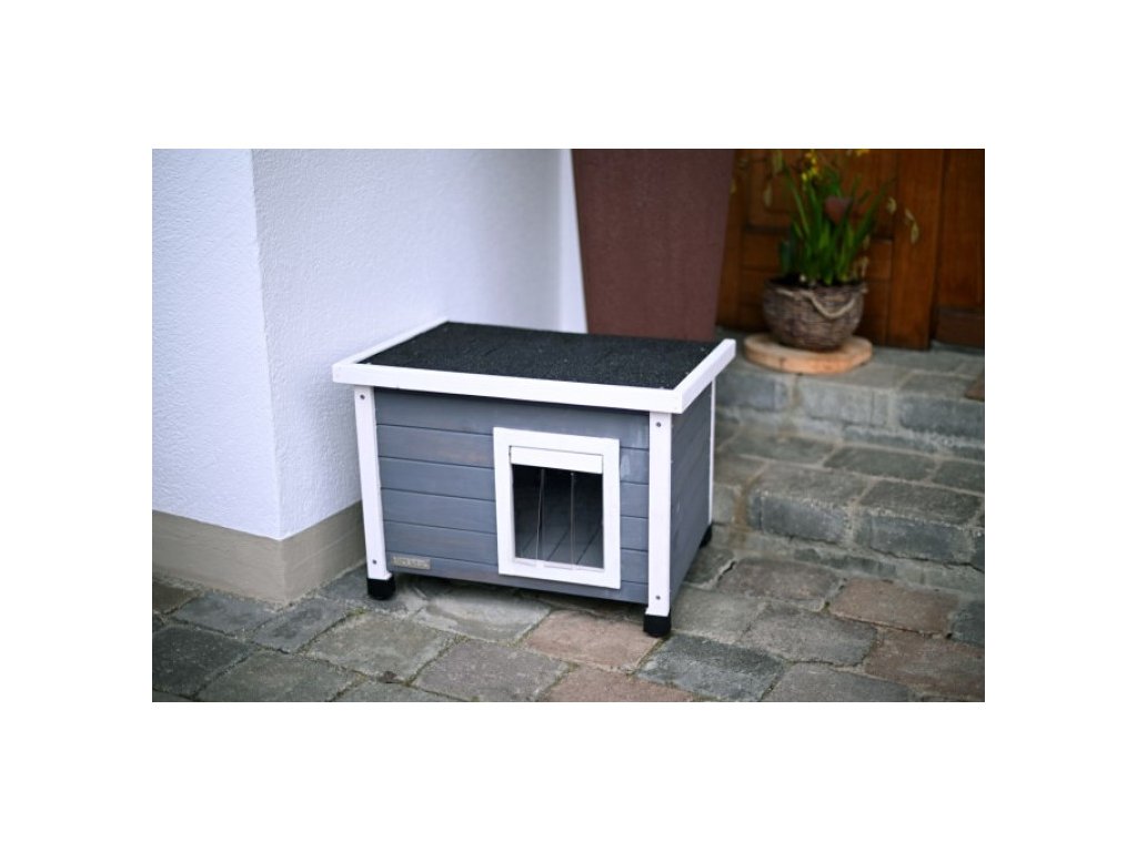 Búda mačacia, domček RUSTICA sivá/biela, 57 x 45 x 43 cm