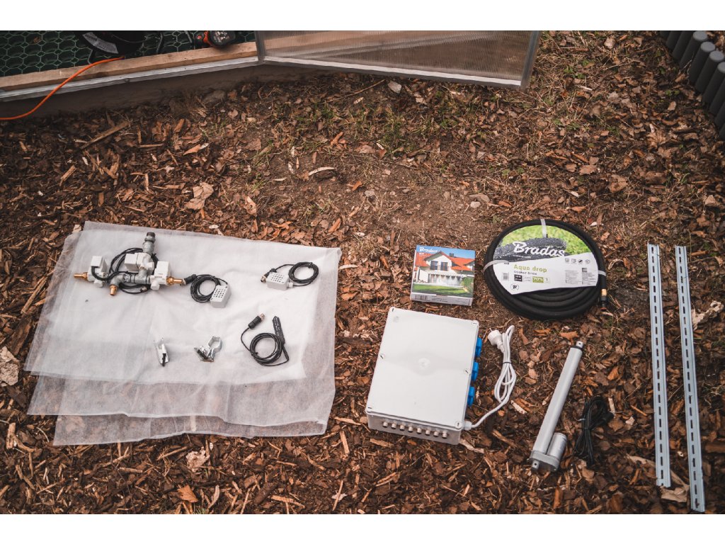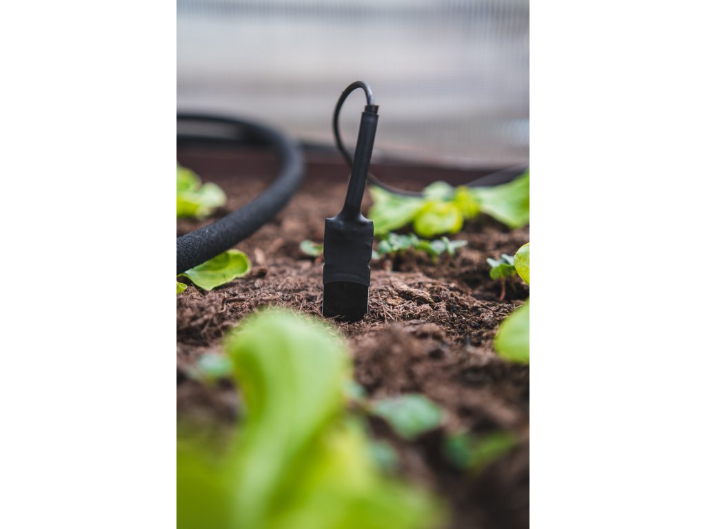 Súčasťou balíčka je aj hadica na kvapôčkovú závlahu, senzor vlhkosti pôdy a zavlažovací ventil. Zavlažovanie prebieha iba v prípade nedostatku vlahy, a k prípadnému plytvaniu teda nedochádza. Optimálna vlhkosť pôdy tiež pomáha zaistiť bohatšiu úrodu a lepšiu odolnosť rastlín proti chorobám. Výbavu je možné ľahko pripojiť aj na zdroj dažďovej vody.