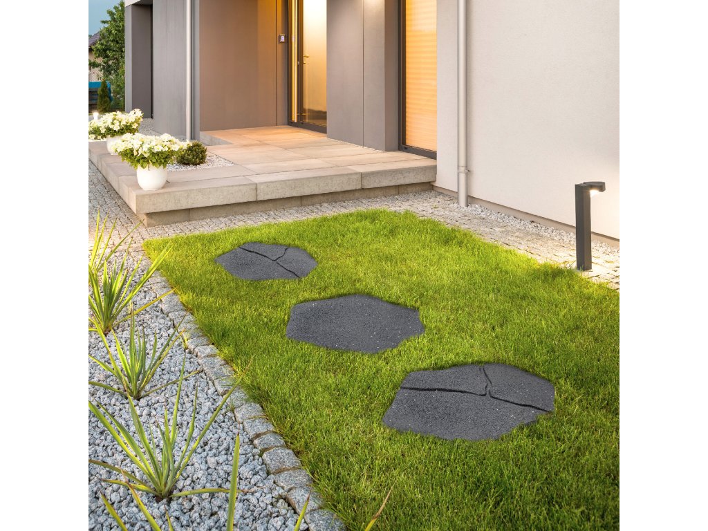 Záhradný nášľap WALKWAY je vyrobený zo 100% recyklovaného protišmykového materiálu (certifikácia TÜV Nord) s dezénom štiepaného kameňa. Tento záhradný nášľap sa postará o to, že vaše cestičky, chodníky budú naozaj originálne a výnimočné. Nášľap je vyrobený z recyklovaného gumového granulátu, čo zaručuje vysokú životnosť a ochranu pred možným zranením. Inštalácia je veľmi jednoduchá a rýchla.