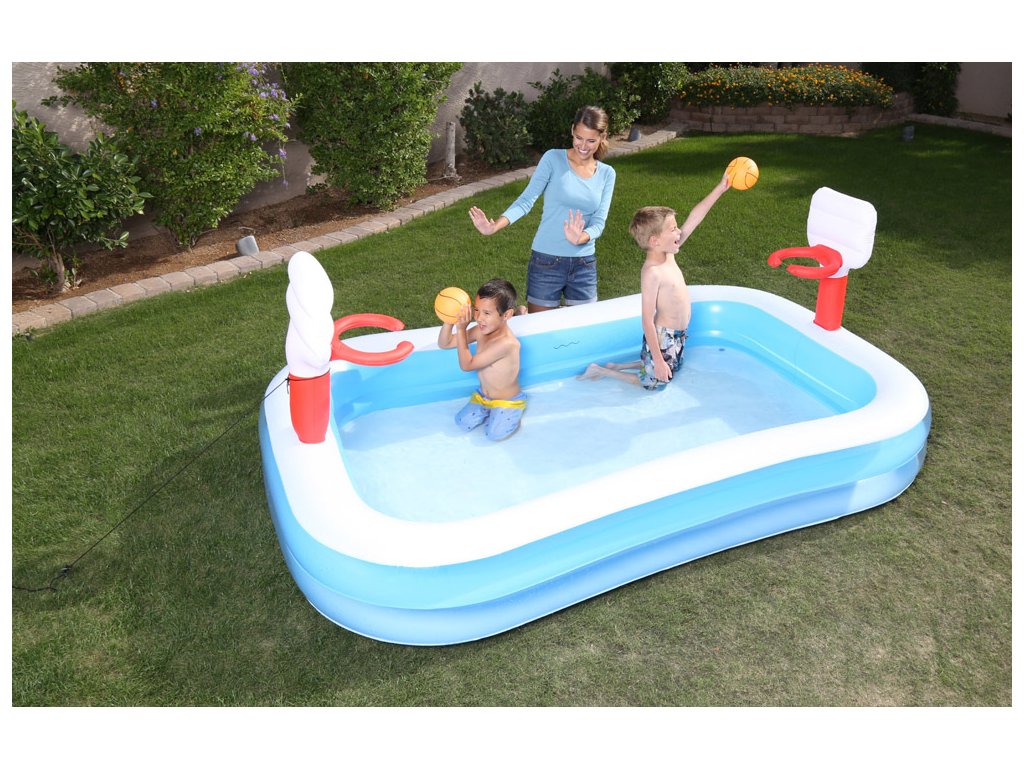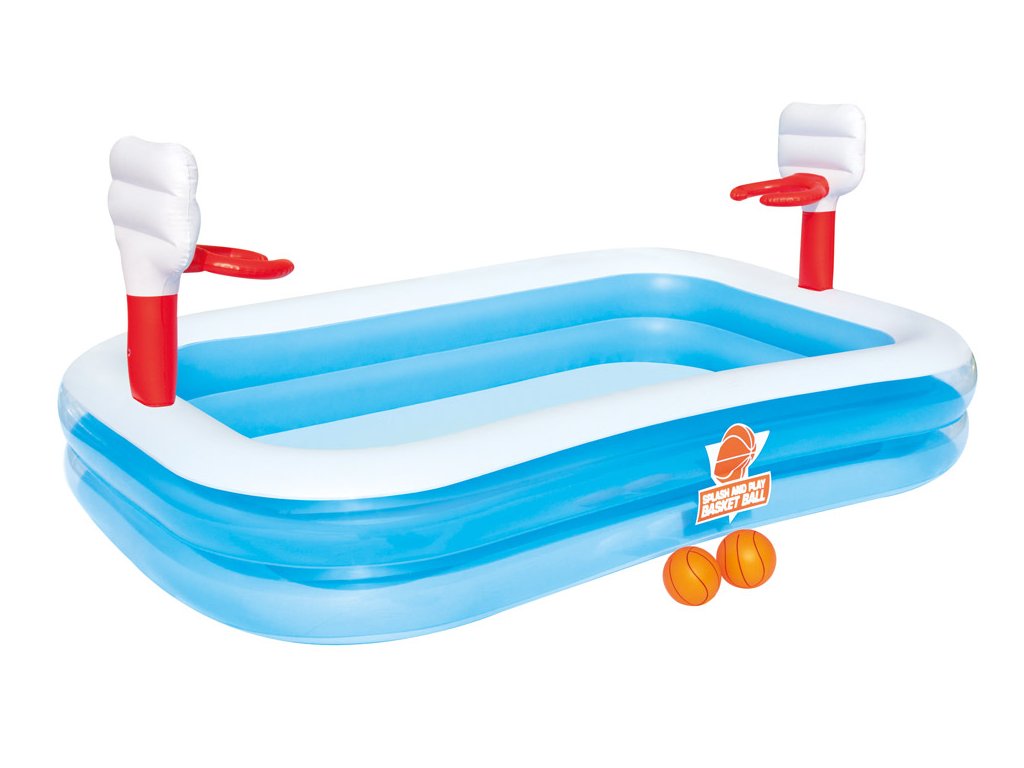 Zabudnite na horúco a užite si bezstarostnú zábavu s detským nafukovacím bazénom obdĺžnikovým bazénom! S integrovanými košmi a loptou je tento bazén ideálny na hranie basketbalu, pričom zároveň poskytuje osvieženie v horúcich letných dňoch. Nechajte sa unášať vlnami zábavy a relaxácie priamo vo vašej záhrade.