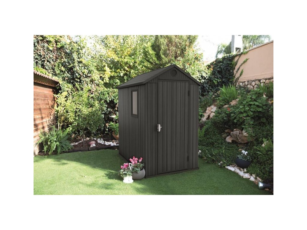 - bezúdržbový domček DARWIN 4x6 slúži na praktické a štýlové uskladnenie všetkého záhradného príslušenstva