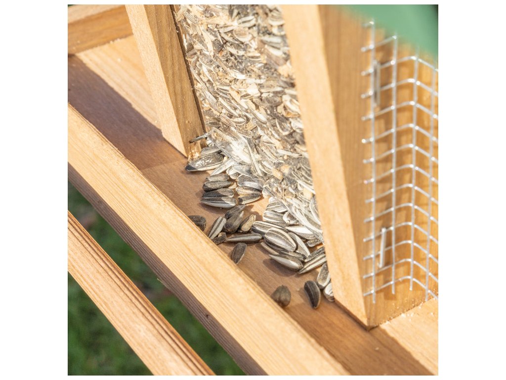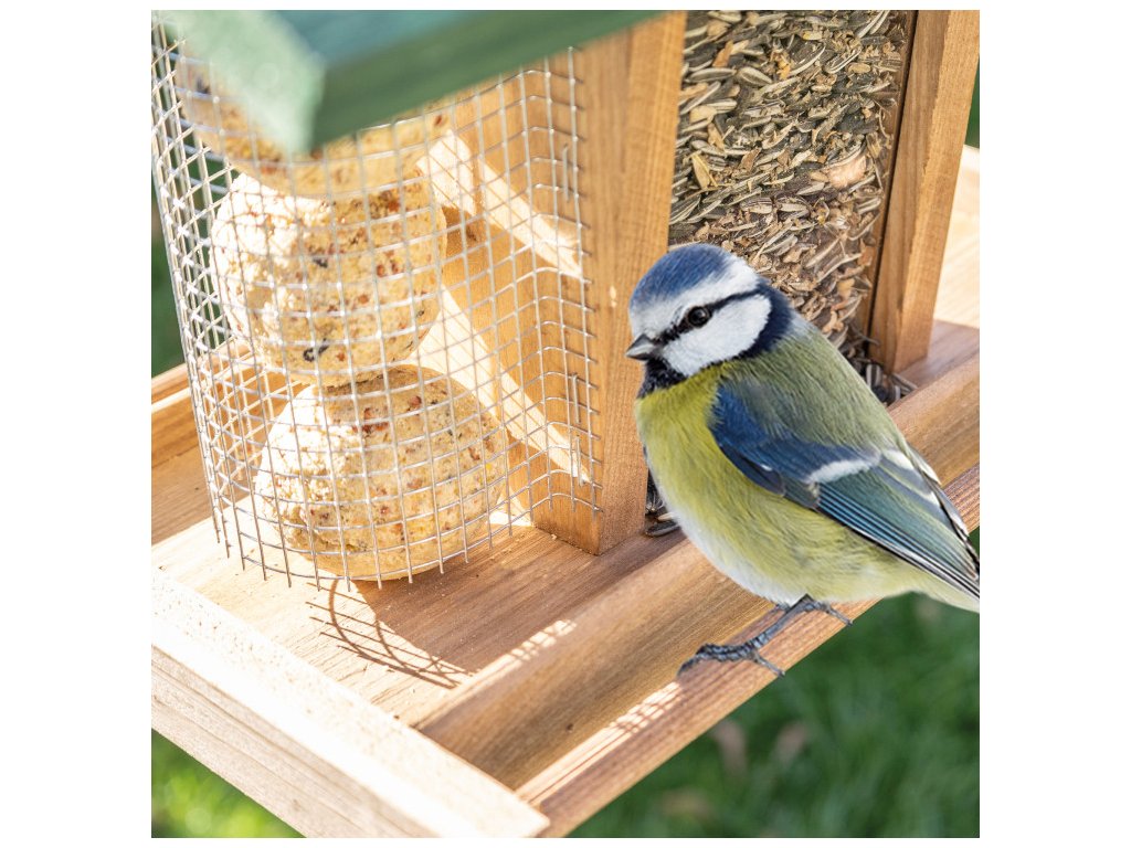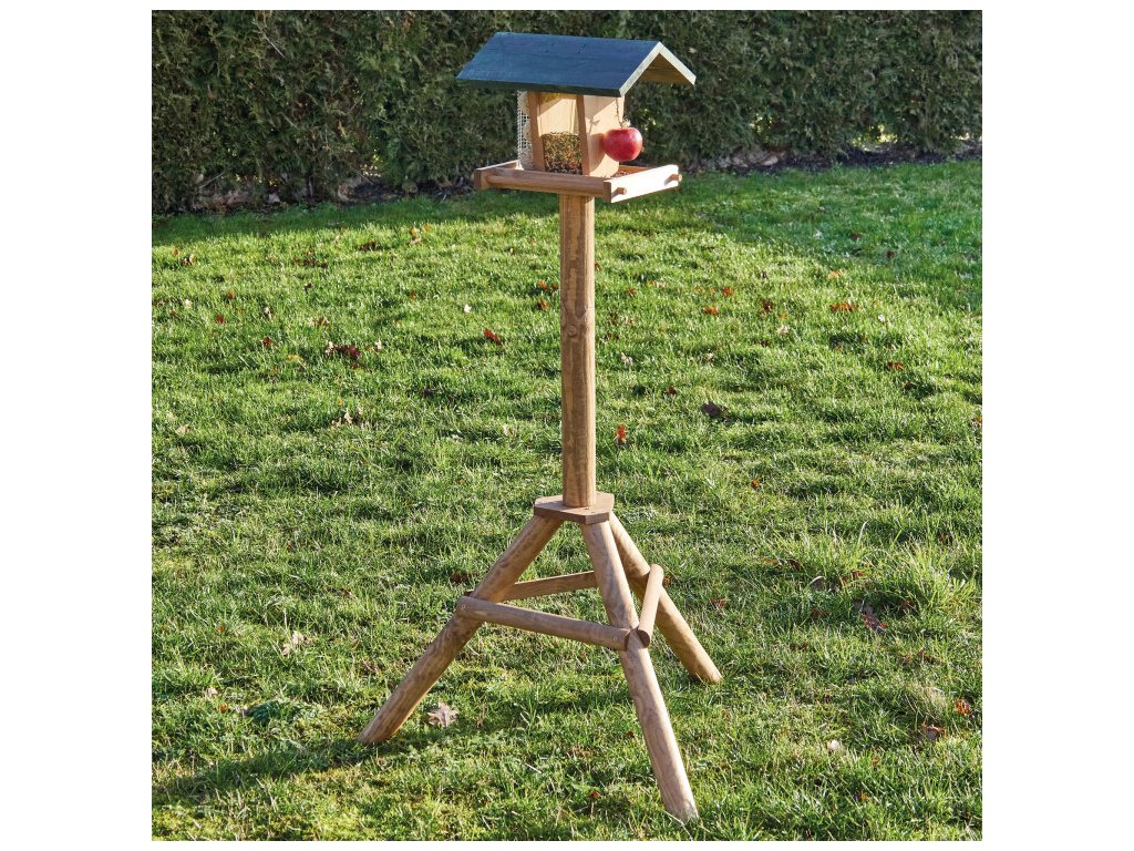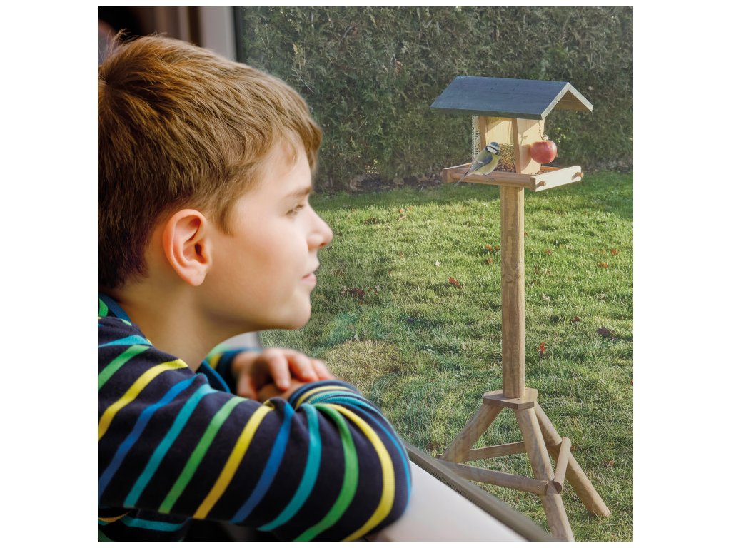Vďaka stabilnému stojanu je toto krásne kŕmidlo jednoduché umiestniť na záhrade, terase alebo balkóne. Kŕmidlo je navyše možné rýchlo a jednoducho naplniť väčším množstvom krmiva, takže ho nie je potrebné často dopĺňať. Stačí jednoducho zložiť strechu a pridať nové krmivo, ako sú lojové gule, orechy alebo sypké zmesi.