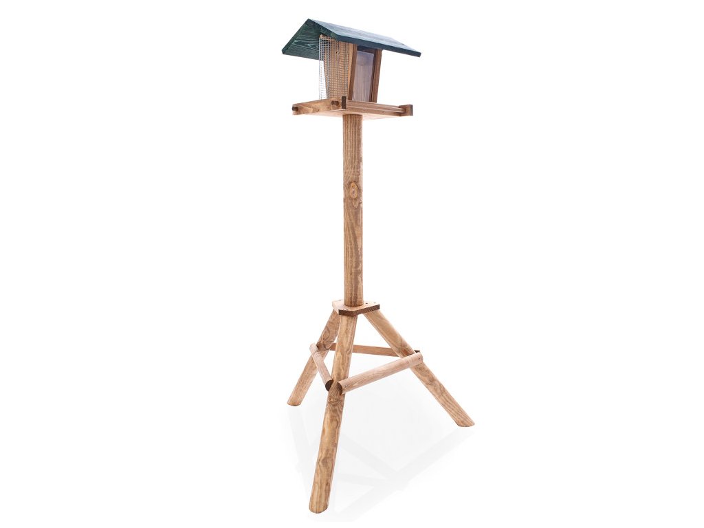 Odolné vtáčie kŕmidlo AGF 330 so stabilným stojanom od značky AGROFORTEL je vyrobené z kvalitného masívneho dreva. Následne bolo ošetrené ekologickou lazúrou, vďaka čomu odoláva nepriazni počasia. Prírodný vzhľad s veľkou zelenou strechou skrášli každú záhradu a hodí sa ku každému domu.