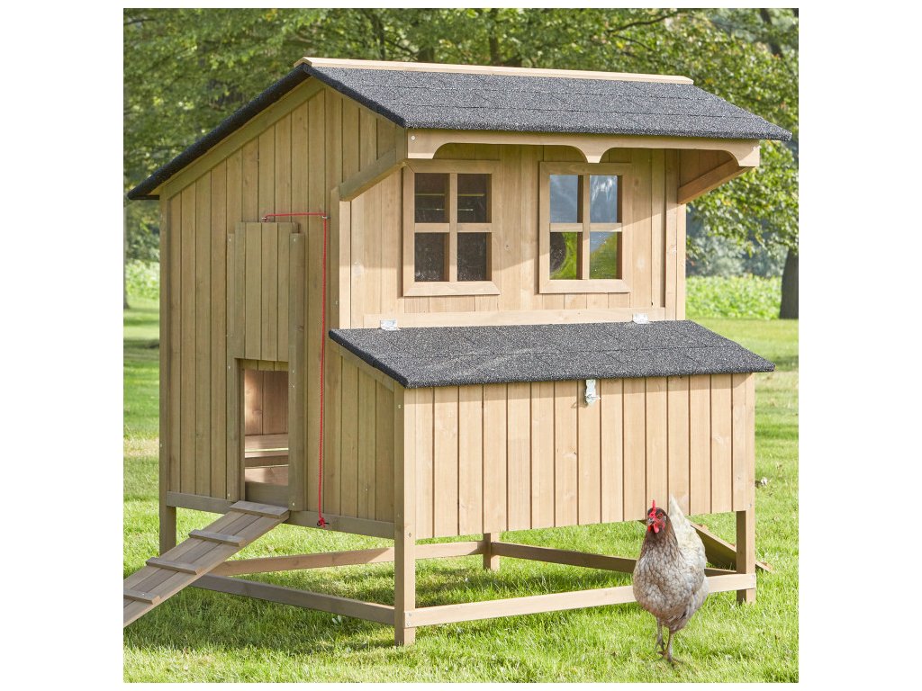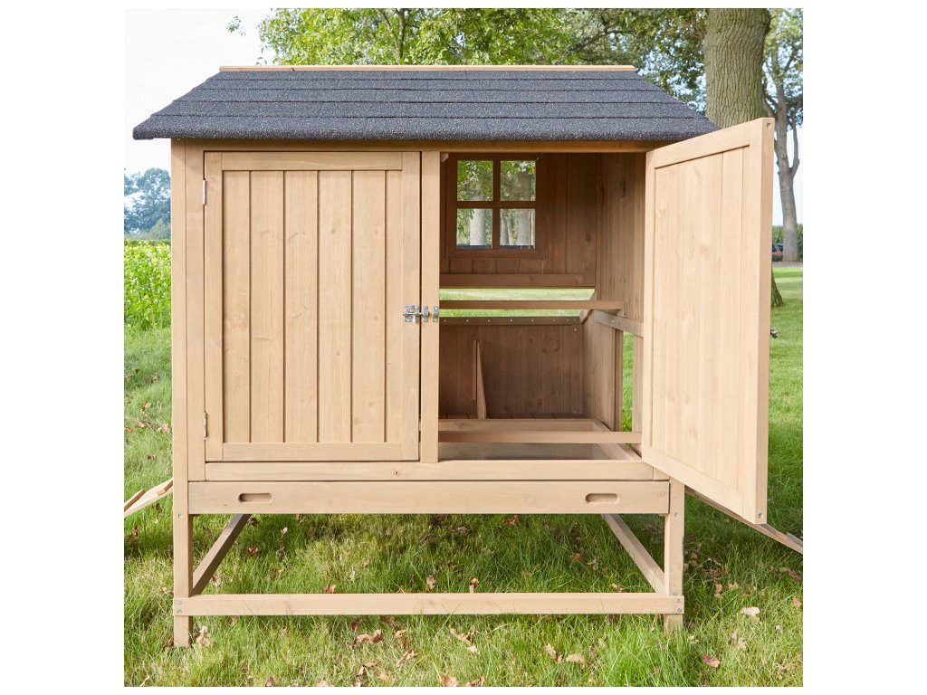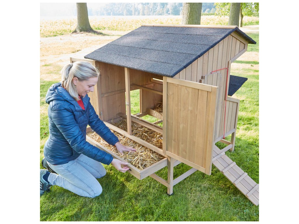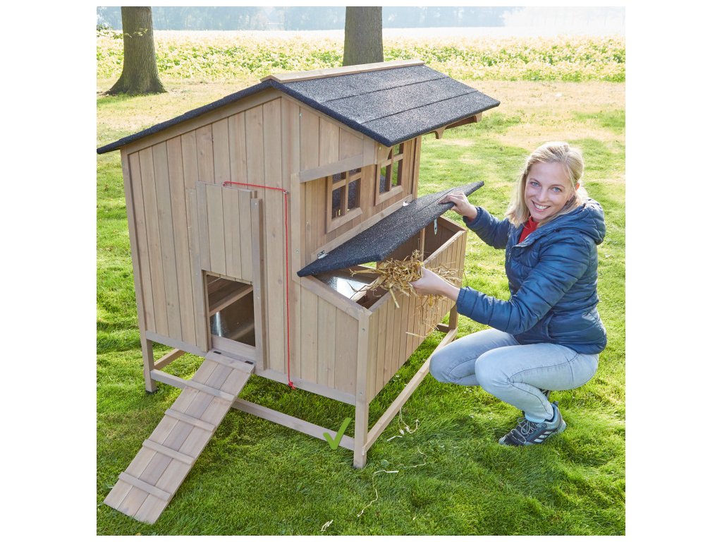 Kurník pre sliepky je vybavený špeciálnymi bidlami pre nočný oddych sliepok. Súčasťou kurníka je vonkajší hniezdiaci box s tromi znáškovými hniezdami, vytvorené s ohľadom na dostatok miesta a pokoja na znášanie vajec. Získavanie vajíčok pritom bude veľmi jednoduché, pretože stačí otvoriť strechu znáškových hniezd a pohodlne vajíčka vybrať. Strecha je navyše vodotesná, čím je zaistené, že voda neprenikne dovnútra kurníka ani do znáškových hniezd. Ventilačné okno na zadnej strane poskytuje dostatočný prísun čerstvého vzduchu, čo zaisťuje optimálne podmienky pre vašu hydinu.