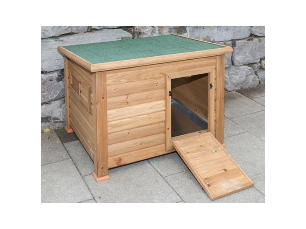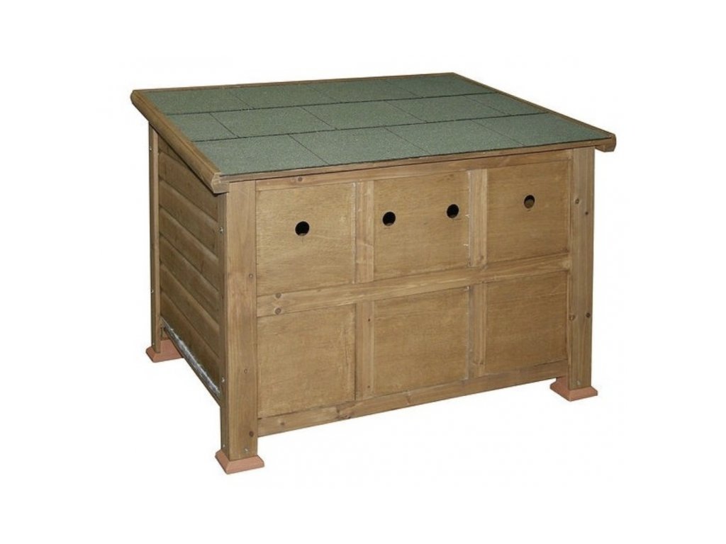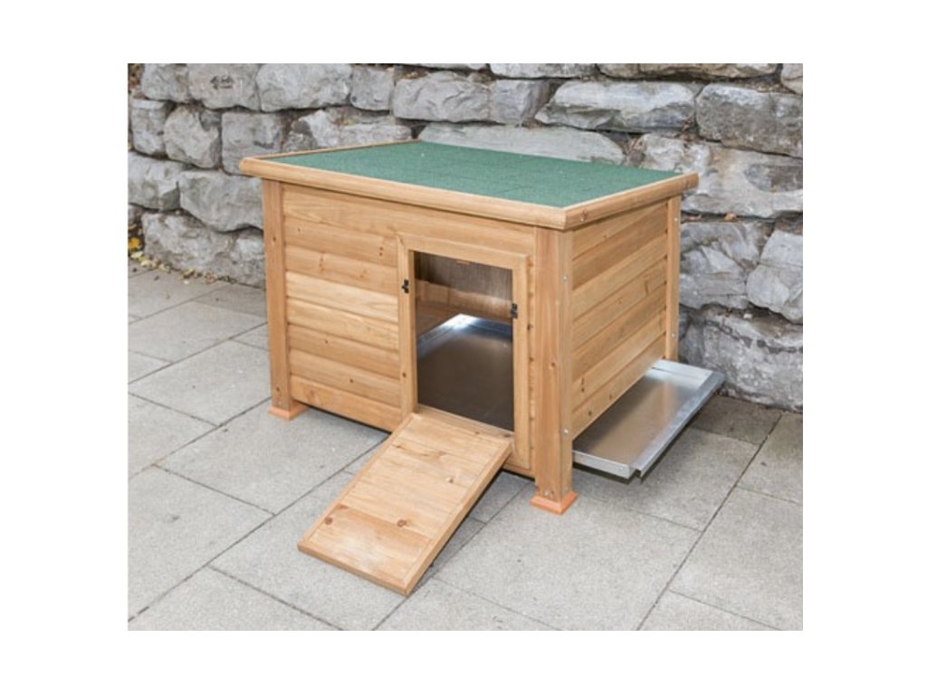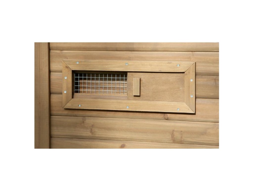 Kurník vyrobený z borovicového dreva má hmotnosť cca 22 kg, a tak zaisťuje veľkú stabilitu. Kurník nie je zateplený. Na ochranu proti slnečnému žiareniu je strecha kurníka pokrytá asfaltovou krytinou. Napriek tomu odporúčame kurník umiestniť pod prístrešok, aby bol chránený pred dažďom, snehom a extrémnym slnečným žiarením. Drevený kurník je povrchovo ošetrený základným ochranným náterom. Pre dlhšiu životnosť treba, ako pri každom dreve, ochranný náter obnovovať. Cirkuláciu vzduchu v kurníku zaisťuje predné posuvné okienko.