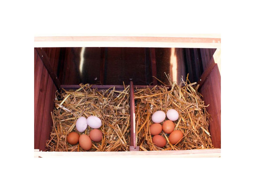 Kurník pre sliepky je vybavený dvoma bidlami pre nočný oddych sliepok. Súčasťou kurníka sú tiež dve vonkajšie kukane so 4 hniezdami vytvorené s ohľadom na dostatok miesta a pokoja na znášanie vajec. Zbieranie vajíčok je veľmi jednoduché, pretože stačí len zdvihnúť strechu hniezda. Strechu hniezda je možné zaistiť otvorenú pomocou drevenej tyčky. Cirkuláciu vzduchu v kurníku zaisťuje predné predné okienko.