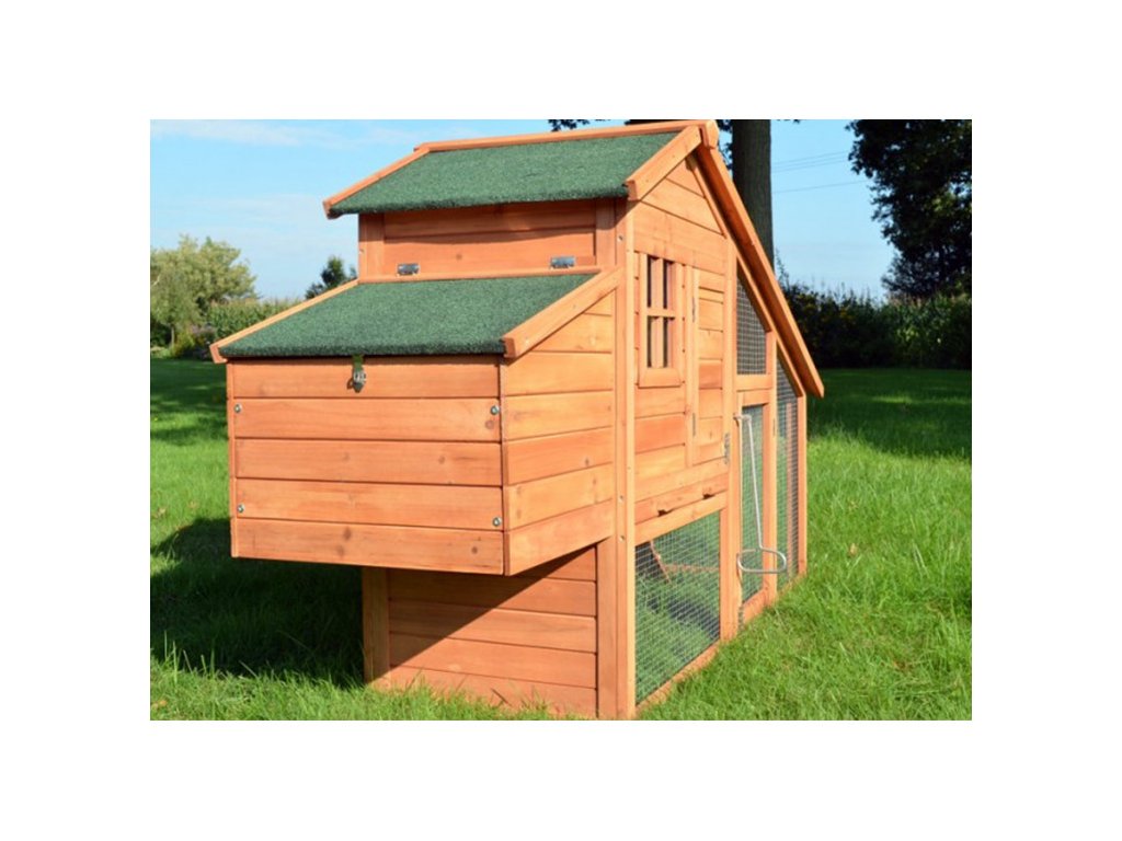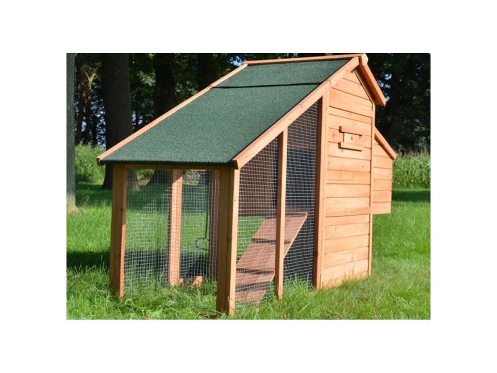 Kurník pre sliepky je vybavený bidlami pre nočný oddych sliepok. Súčasťou kurníka sú tiež dve vonkajšie kukane, v ktorých budú mať sliepky dostatok priestoru a pokoja na znášanie vajec. Získavanie vajíčok pritom je veľmi jednoduché, na ich vyzdvihnutie stačí len zdvihnúť strechu znáškových hniezd. Strechu hniezda je možné zaistiť otvorenou pomocou drevenej tyčky. Zároveň nehrozí, že by do kurníka zatieklo, pretože strecha vodotesná. Cirkuláciu vzduchu v kurníku zaisťuje predné vyklápacie okienko.