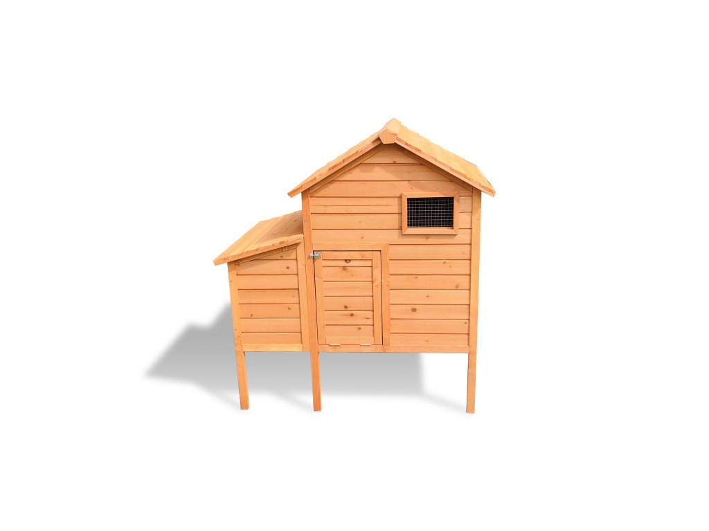 - Robustná a odolná konštrukcia: Kurník je vyrobený z masívneho smrekového dreva s ochranným náterom. Vyvýšené nožičky chránia konštrukciu pred vlhkosťou od zeme a sťažujú prístup predátorom.