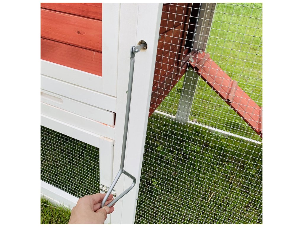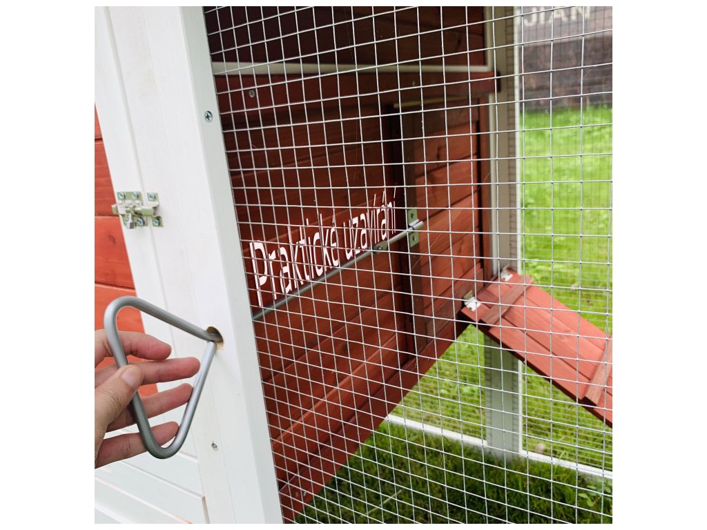 Kurník je vybavený štyrmi dvierkami. Väčšie predné dvierka slúžia pre jednoduchú výmenu vody, krmiva a ľahký prístup do kurníka. Z bočnej strany má kurník pre sliepky umiestnené menšie posuvné dvierka, ktoré sliepkam umožnia ľahký výstup do výbehu. Súčasťou posuvných dvierok je madlo, vďaka ktorému ich možno otvoriť bez nutnosti vchádzať do výbehu. Nechýbajú ani veľké otvárateľné dvierka pre prístup do výbehu a menšie dvierka pod domčekom. Všetky dvierka sú chránené uzamykacím systémom pre vyššiu bezpečnosť. Čistenie kurníka zvládnete hravo počas chvíľky vďaka výsuvnému pozinkovanému trusníku. Tiež čistenie znáškového hniezda nebude problém, vďaka výklopnej strieške.