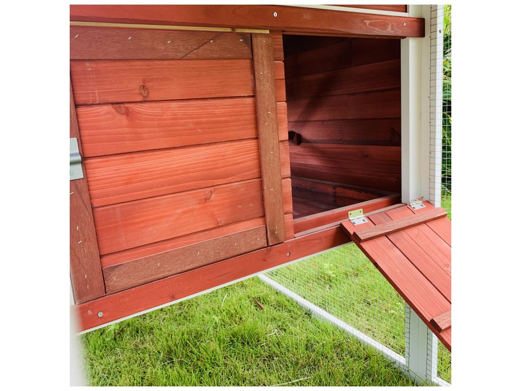 Kurník pre sliepky MILÁNO RED MAXI s rozmermi 220 x 74 x 120 cm je ideálny pre 7-8 sliepok. Tento praktický vyvýšený kurník s výbehom poskytne sliepkam skvelé zázemie vo dne i v noci. Kurník je vybavený dvoma bidielkami pre nočný odpočinok a dvoma vonkajšími vodotesnými znáškovými hniezdami pre pohodlnú znášku vajec. Sliepky majú do kurníka pohodlný prístup cez otvorené dvierka a po naklonenej protišmykovej rampe. Kurník je umiestnený vo vrchnej časti výbehu a tým sa plocha výbehu maximalizuje. Zároveň odolné smrekové drevo zabezpečuje stabilitu a pevnosť celého kurníka. Pri čistení kurníka iste oceníte výsuvný trusník, ktorý sa ľahko čistí aj vďaka svojmu kovovému povrchu, ktorý zabraňuje vsakávaniu tekutín.