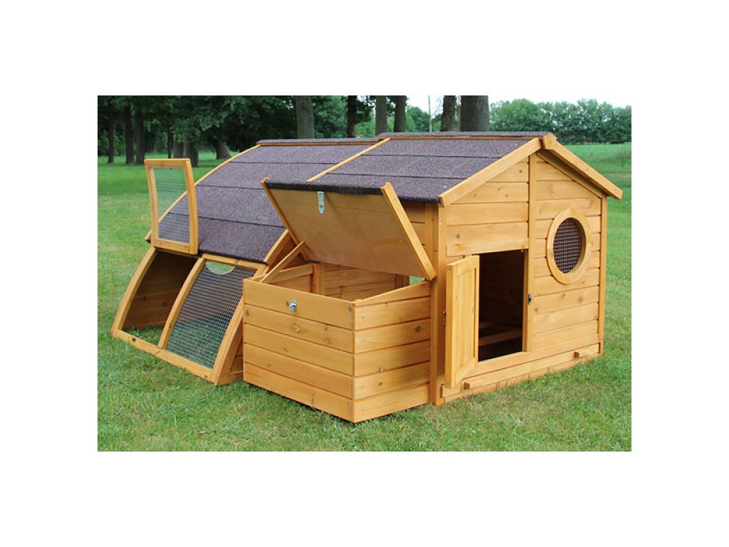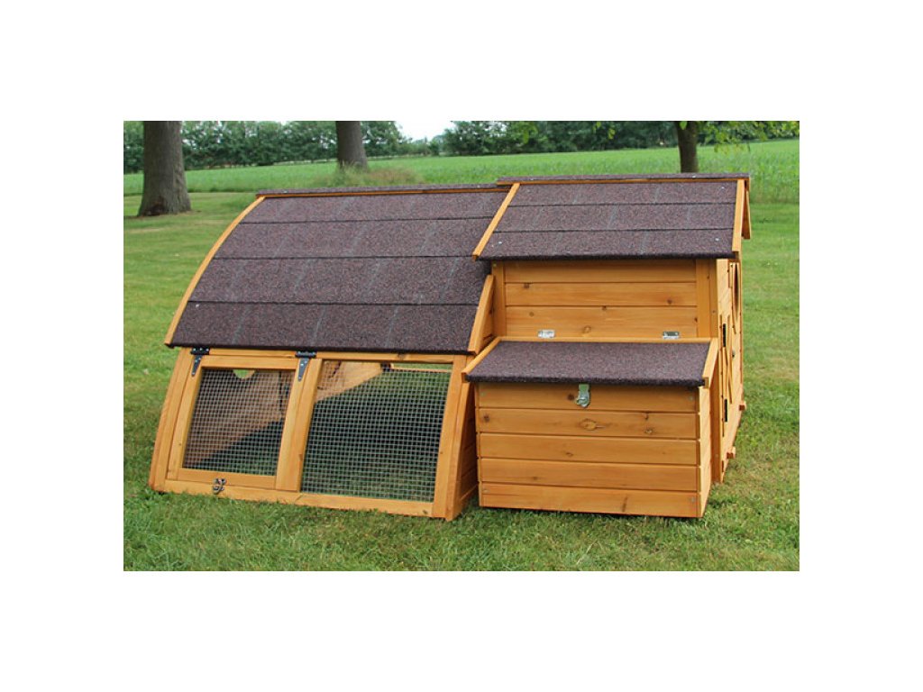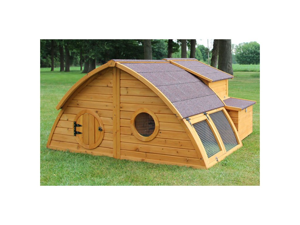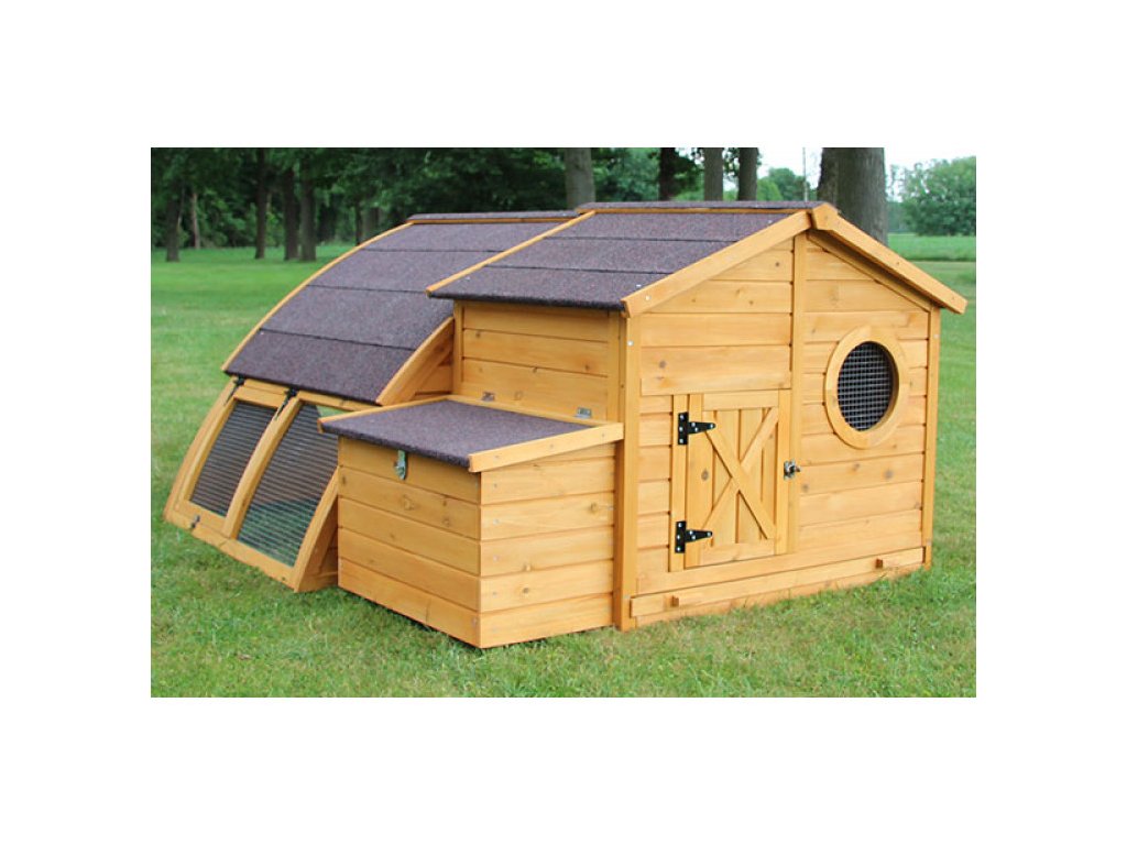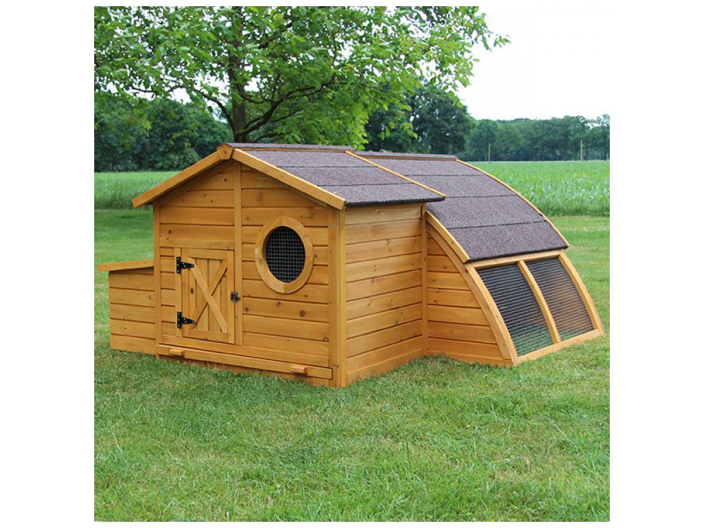 Kurník vyrobený z borovicového dreva má hmotnosť cca 49 kg a zabezpečuje tak veľkú stabilitu. Aj napriek absencii zateplenia zostávajú nosnice pod strechou kurníka i v snáškových hniezdach chránené asfaltovou krytinou, čo predstavuje opatrenie proti slnečnému žiareniu. Odporúčame však umiestniť kurník pod nejaký druh prístrešku, aby bol chránený pred nepriaznivými vplyvmi počasia, vrátane dažďa, snehu a slnečného žiarenia. Drevený kurník je povrchovo ošetrený základným ochranným náterom. Pre dlhšiu životnosť je potrebné, ako pri každom dreve, ochranný náter obnovovať.