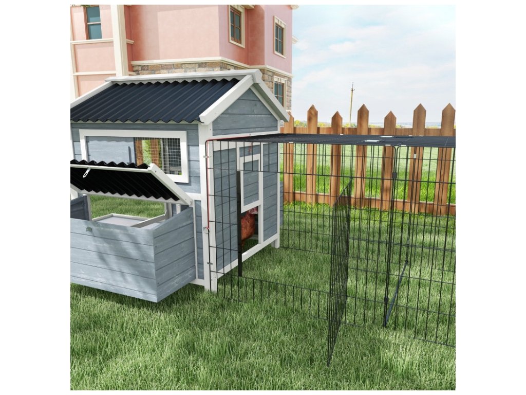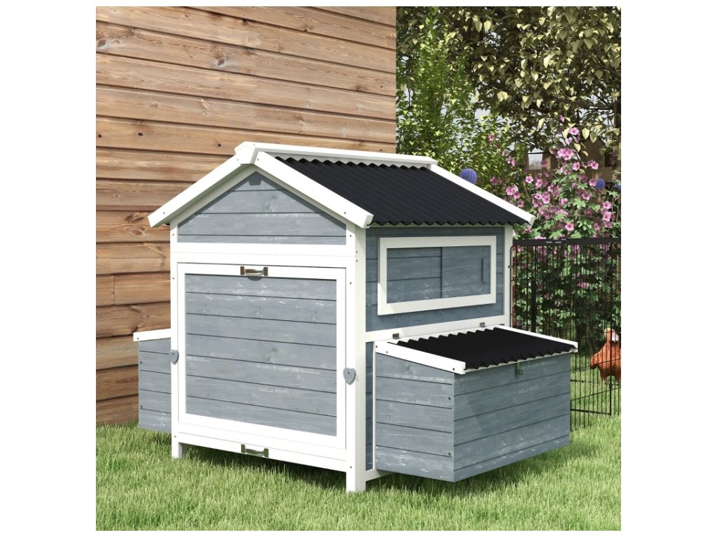 Priestranný kurník pre šťastné sliepočky: Kurník poskytuje veľkorysý priestor, znáškové hniezda na oboch stranách, veľký výbeh a dve bidlá. Vaše sliepočky budú mať kopec miesta na pohyb aj zábavu, čo z neho robí ideálny útulný domov.