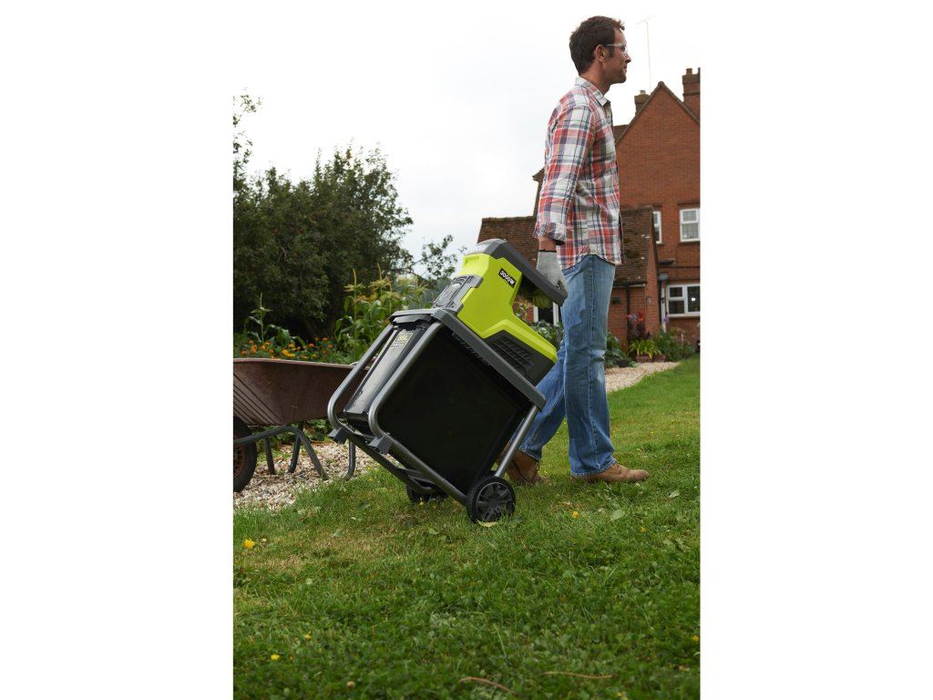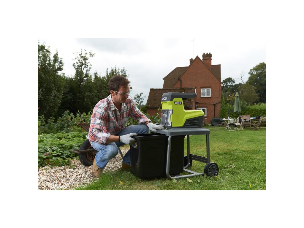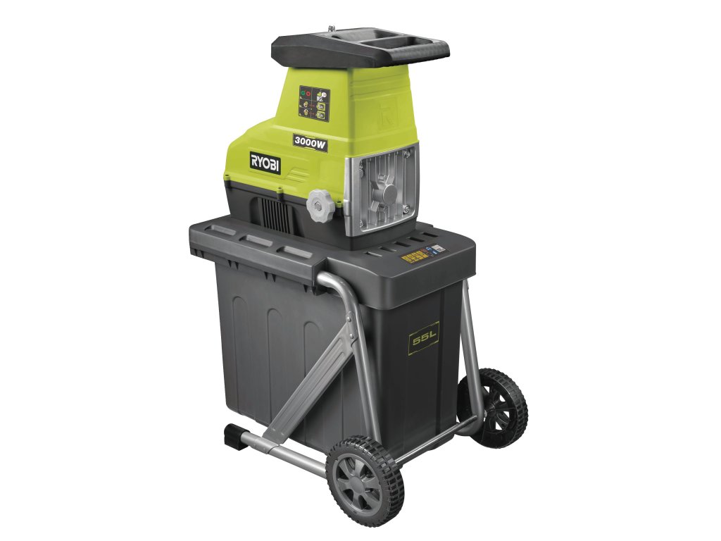 Tichý elektrický drvič konárov RYOBI 3000 W s 55 litrovým kontajnerom je výkonný kompaktný stroj slúžiaci k spracovaniu konárov na palivo, alebo ako mulčovací či kompostový materiál.