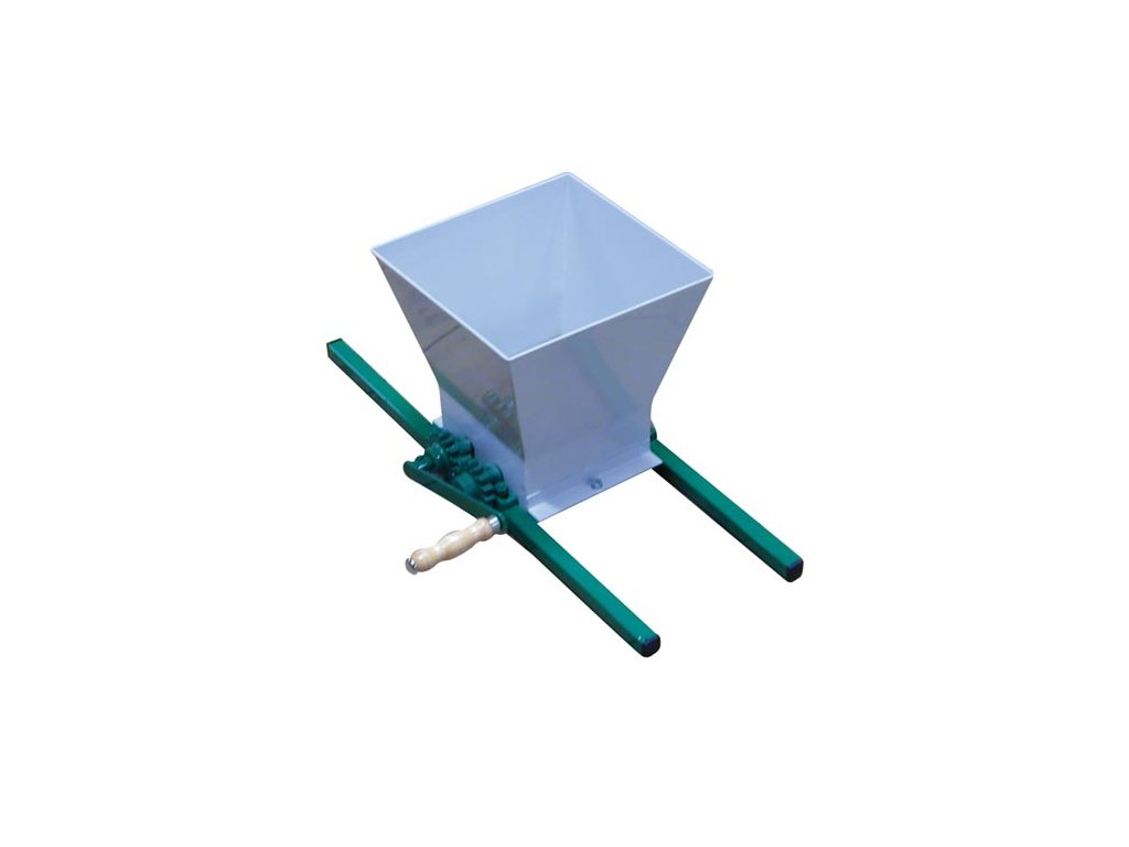 Ručný drvič na ovocie a zeleninu k príprave zmesi na lisovanie. Drvenie prebieha pomocou protichodných valcov s klincami. Tento typ konštrukcie pretvorí jablká na drobné častice. Táto hmota je potom veľmi vhodná k ďalšiemu lisovaniu. Oceľový rám obsahuje plechovú násypku s dvoma silonovými valcami s klincami. Ovocie z násypky sa na nich zachytáva a drví.