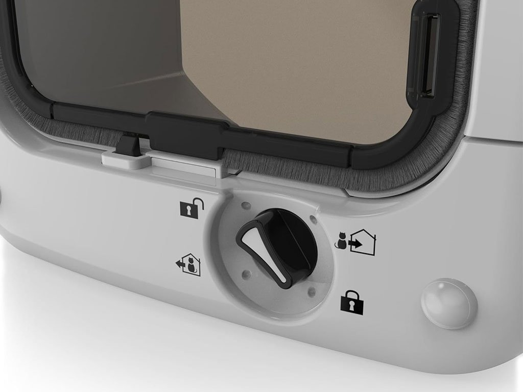 Dvierka je možné nastaviť až pre 30 mačiek! Vďaka otočnému zámku môžete dvierka nastaviť v 4 rôznych kombináciách priechodu. Magnetický zámok na priehľadnej polymérovej klapke zabezpečí, že sa klapka po prejdení mačky vždy spoľahlivo uzavrie. Klapka je navyše vzduchotesná, čím sa predchádza úniku tepla a prievanom. Dvierka je možné inštalovať do dverí, panelov alebo stien s hrúbkou do 85 mm.