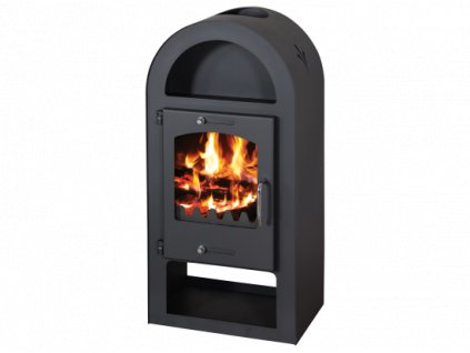 Zaoblené a moderné krbové kachle Victoria Maestro s výkonom 9 kW, presklenými dvierkami a užitočným priestorom na odkladanie dreva.