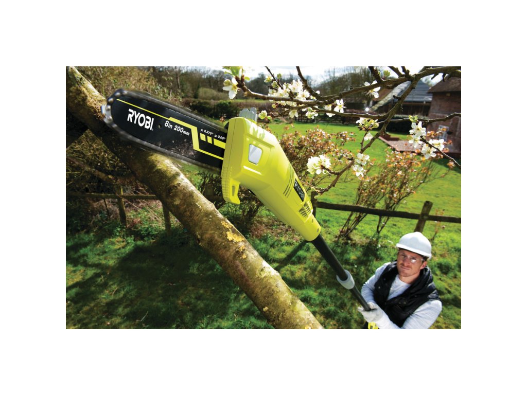 Výkonný 750W motor. vysoký krútiaci moment a rýchlosť reťaze 10m/s. Dĺžku je možné predĺžiť prostredie násadou na 2.7m, umožňujúci dosah až 4 metre. 15° sklon rezacej hlavy pre bezpečnejšie a jednoduchšie rezanie. Automatické mazanie reťaze a lišty pre plynulé rezanie.
