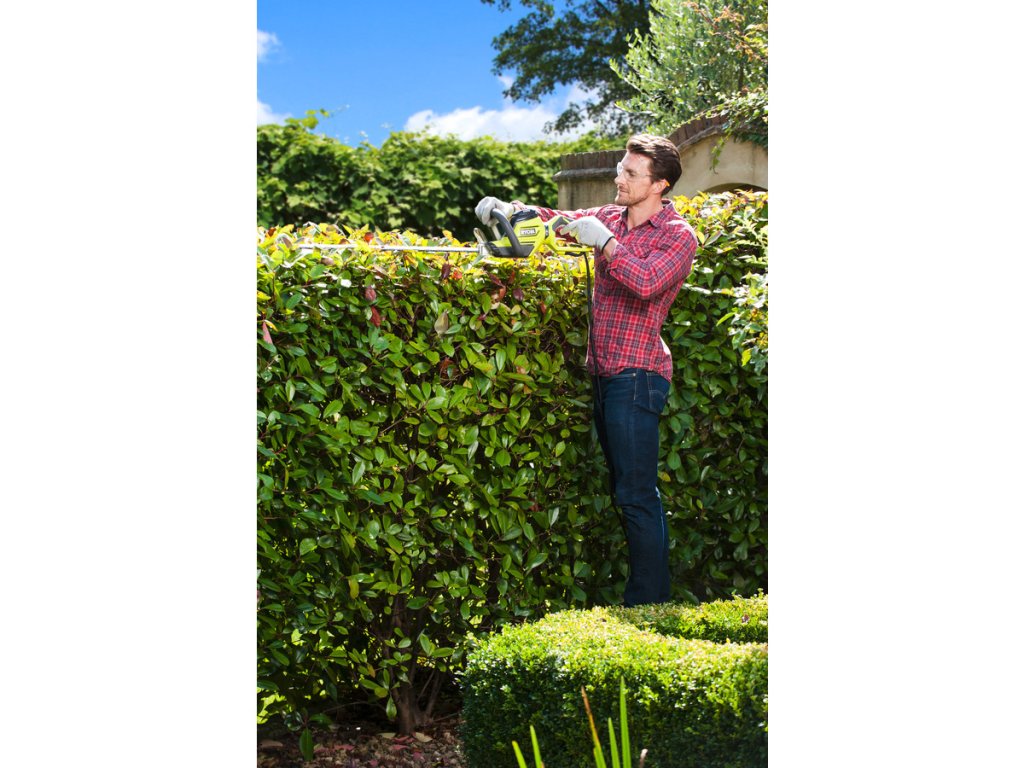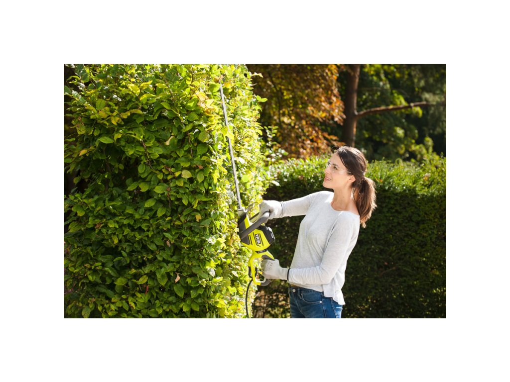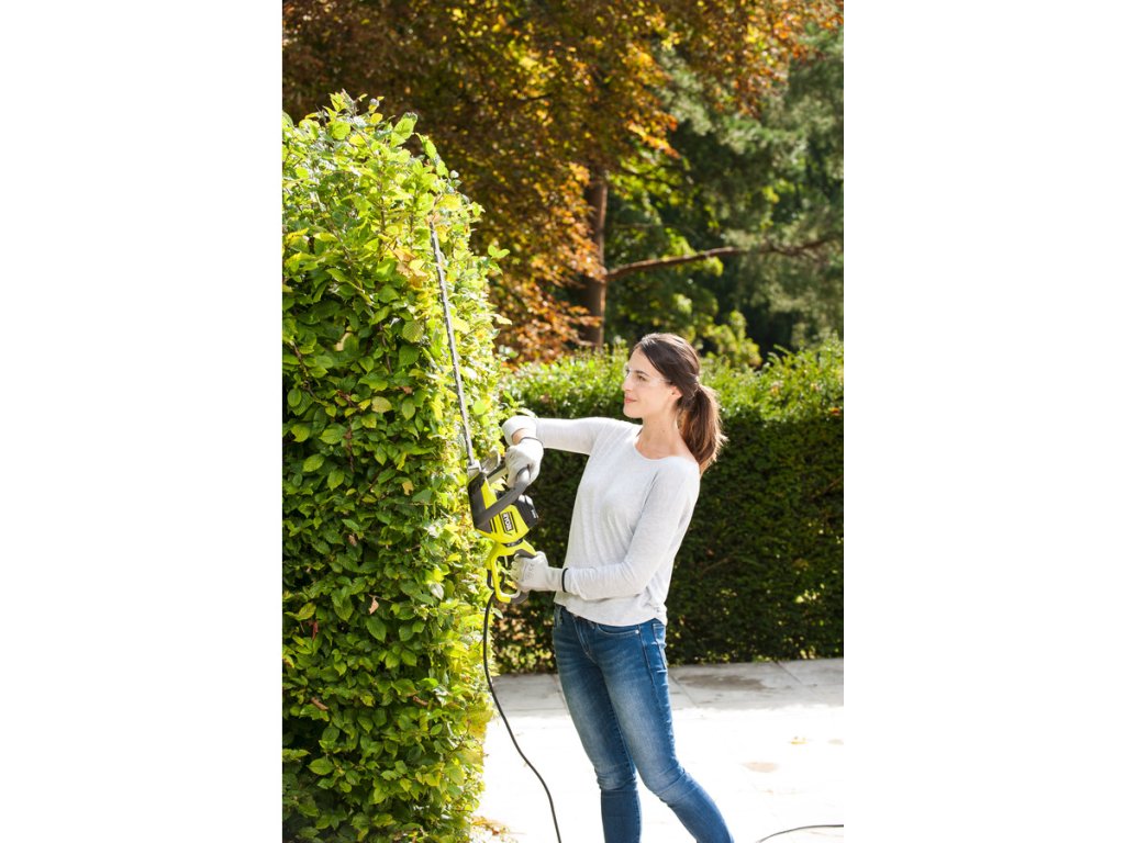 Elektrický plotostrih na živý plot RYOBI RHT5655RS, 550 W s otočnou rukoväťou je ideálny pomocník pre úpravu živých plotov, okrasných stromčekov a kríkov, ktorý vám pomôže udržať váš plot krásny a zdravý.