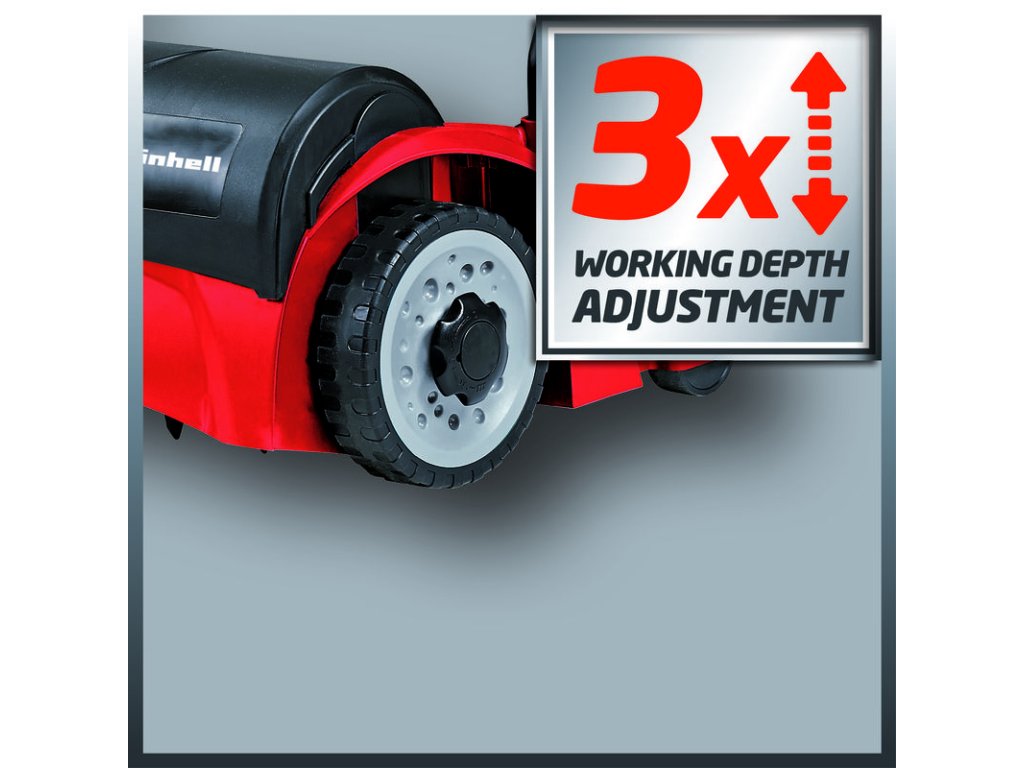 Vďaka nastaveniu pracovnej hĺbky v troch stupňoch je možné vertikutátor dobre prispôsobiť požiadavkám pôdy a porastu. Prídavná parkovacia poloha spoľahlivo chráni nože a zároveň podklad. Široké kolesá uľahčujú prácu v nerovnom teréne a zároveň sú šetrné voči trávniku. Prístroj má robustné puzdro z vysoko kvalitného, húževnatého plastu. Vďaka sklápaciemu držadlu je možné vertikutátor uložiť tak, aby nezaberal príliš miesta. Prístroj sa odporúča pre trávniky do cca 300 m2.